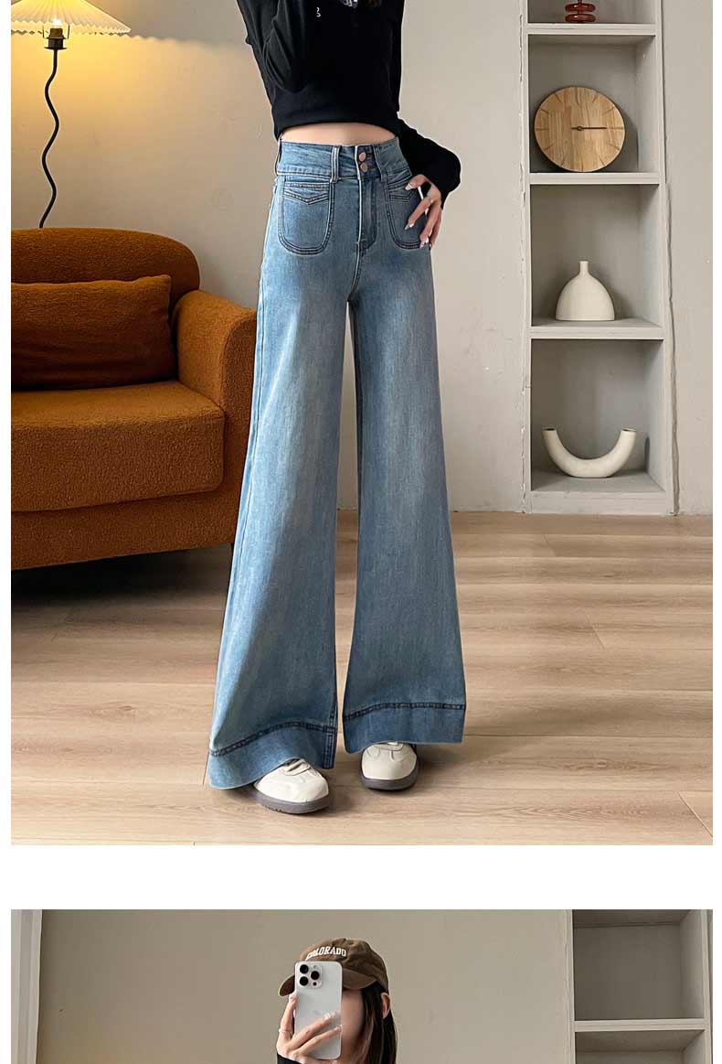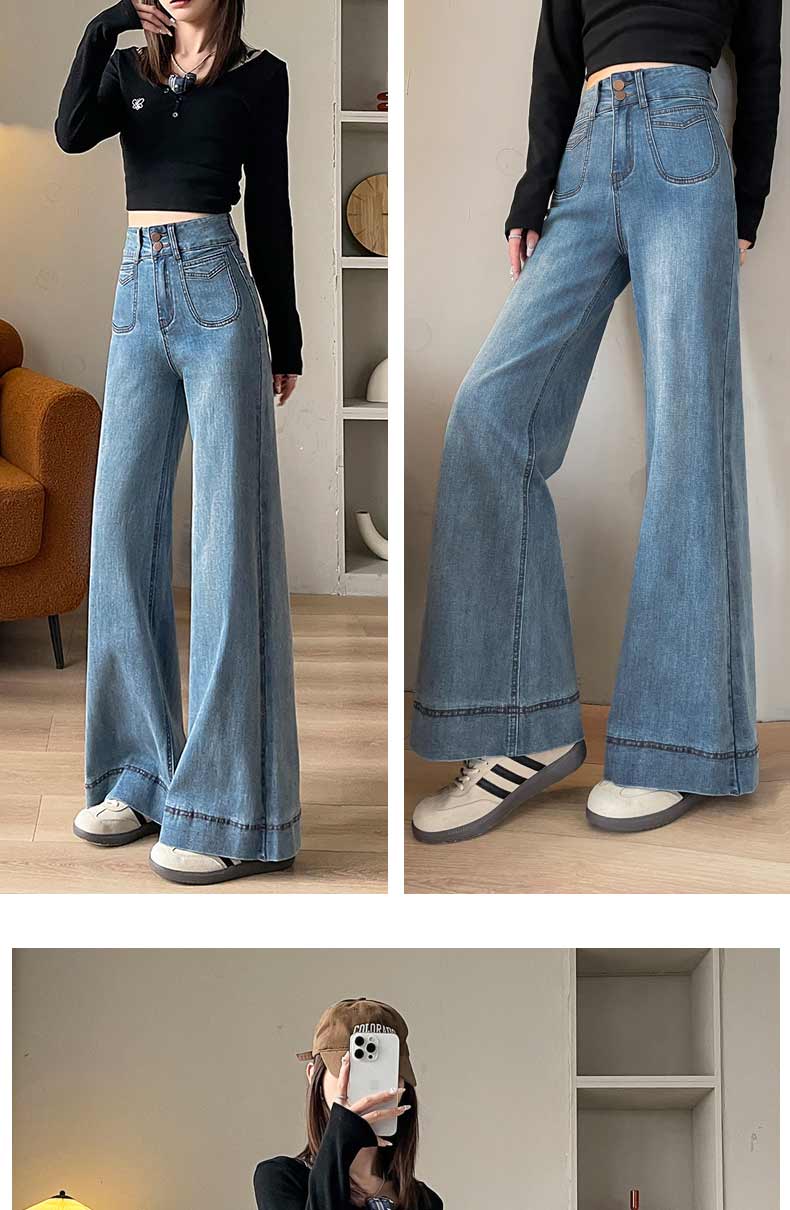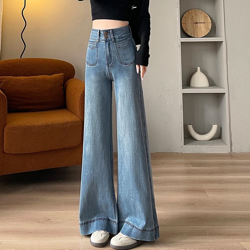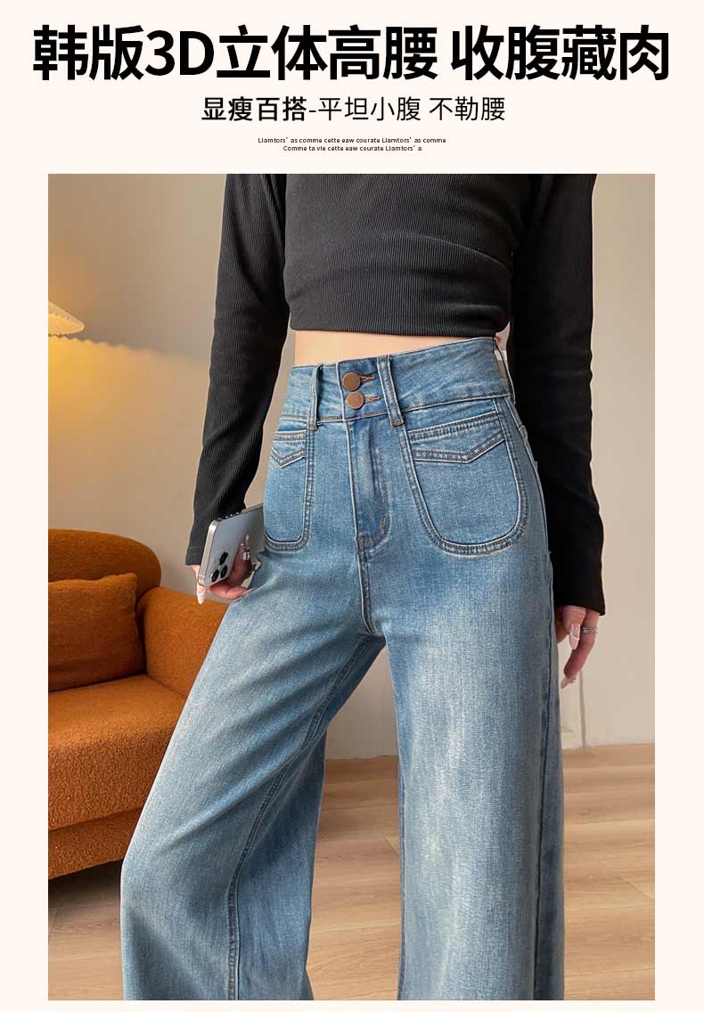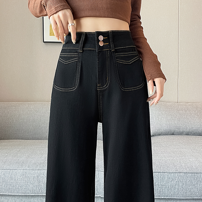 기모 두꺼운 넓은 다리 청바지 여성의 겨울 2024 작은 따뜻한 바지 높은 허리 느슨한 바닥 바지스토어 가기