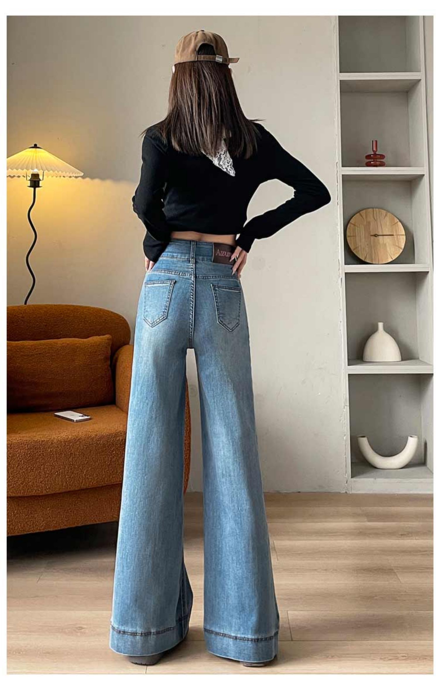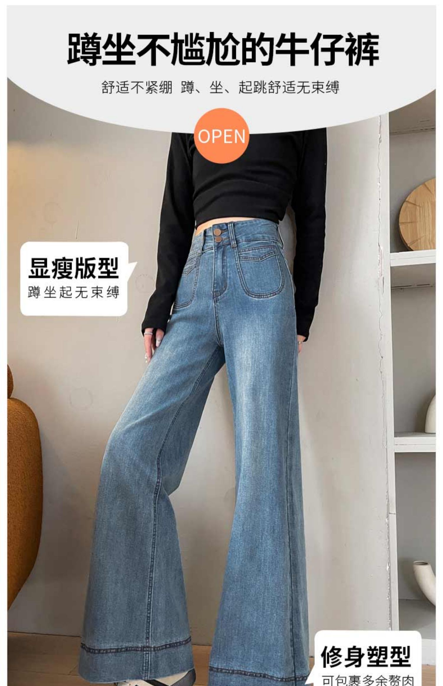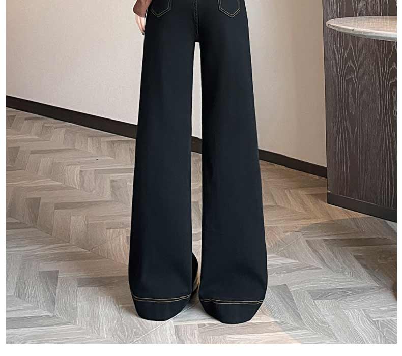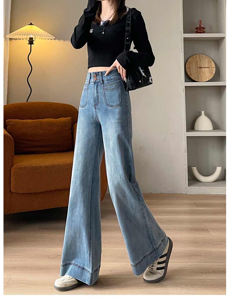 기모 두꺼운 넓은 다리 청바지 여성의 겨울 2024 작은 따뜻한 바지 높은 허리 느슨한 바닥 바지스토어 가기