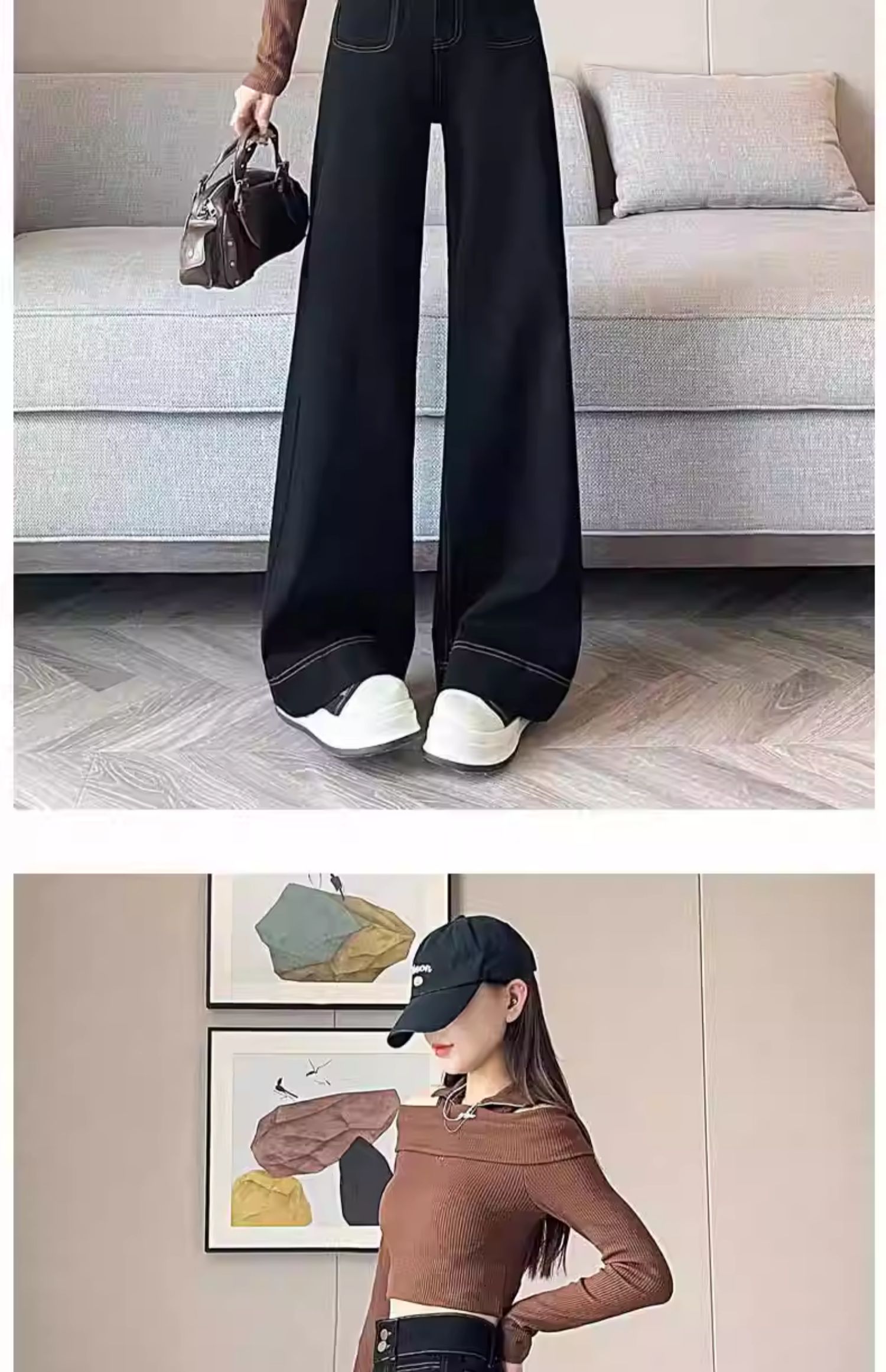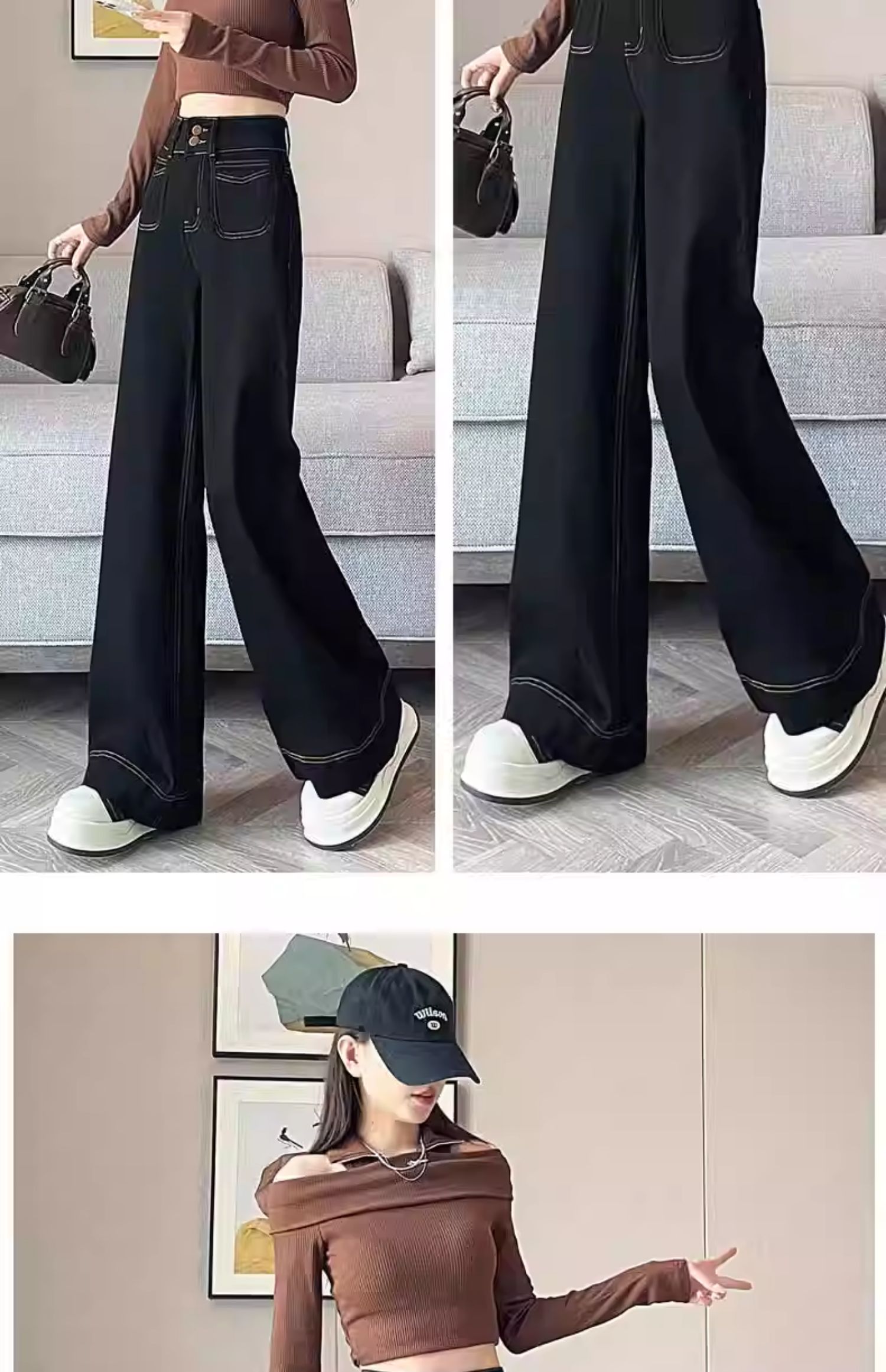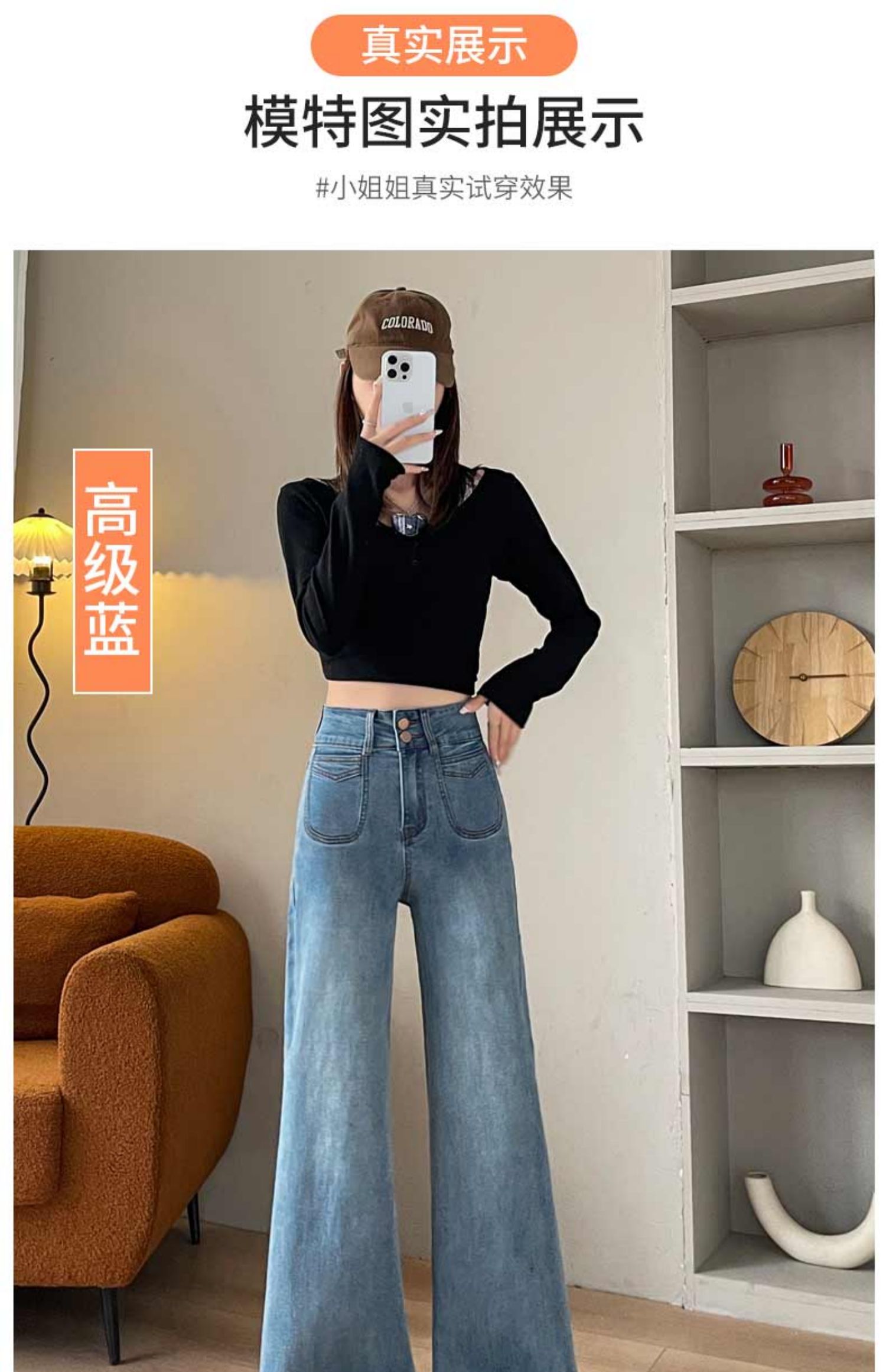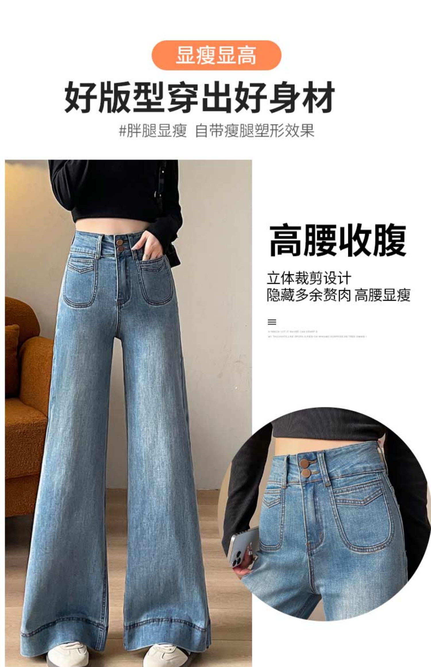 기모 두꺼운 넓은 다리 청바지 여성의 겨울 2024 작은 따뜻한 바지 높은 허리 느슨한 바닥 바지스토어 가기
