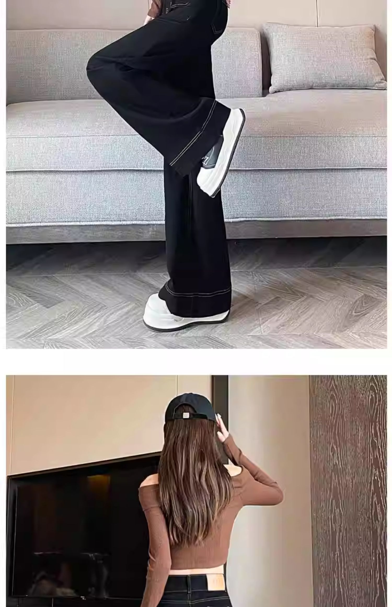 • 벨벳이 없는 검은색 바지