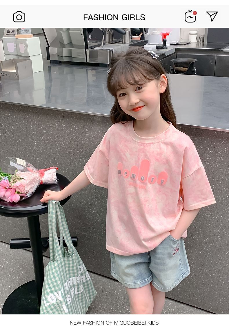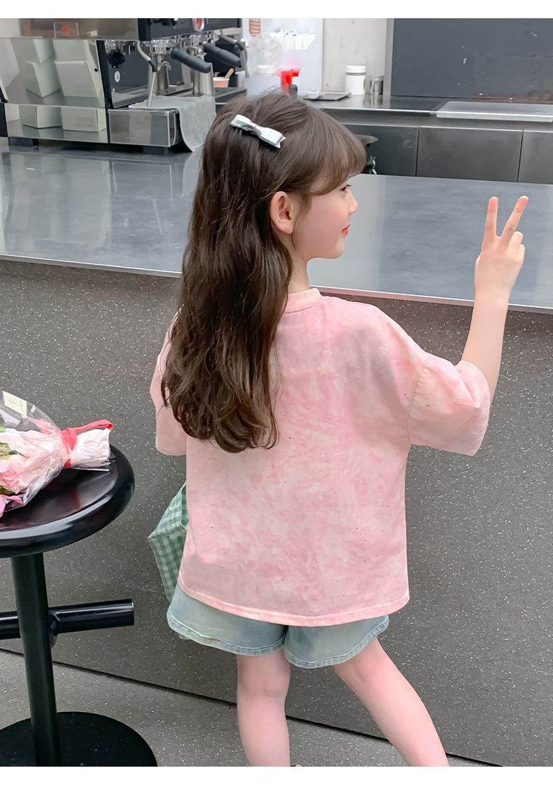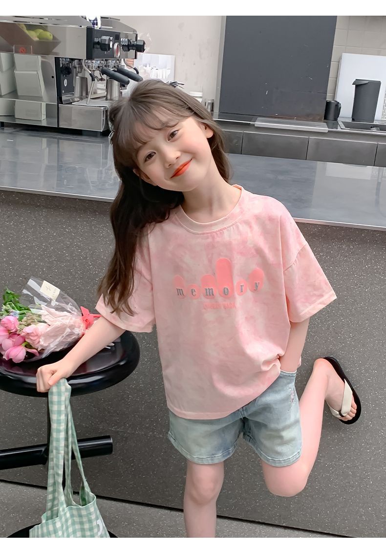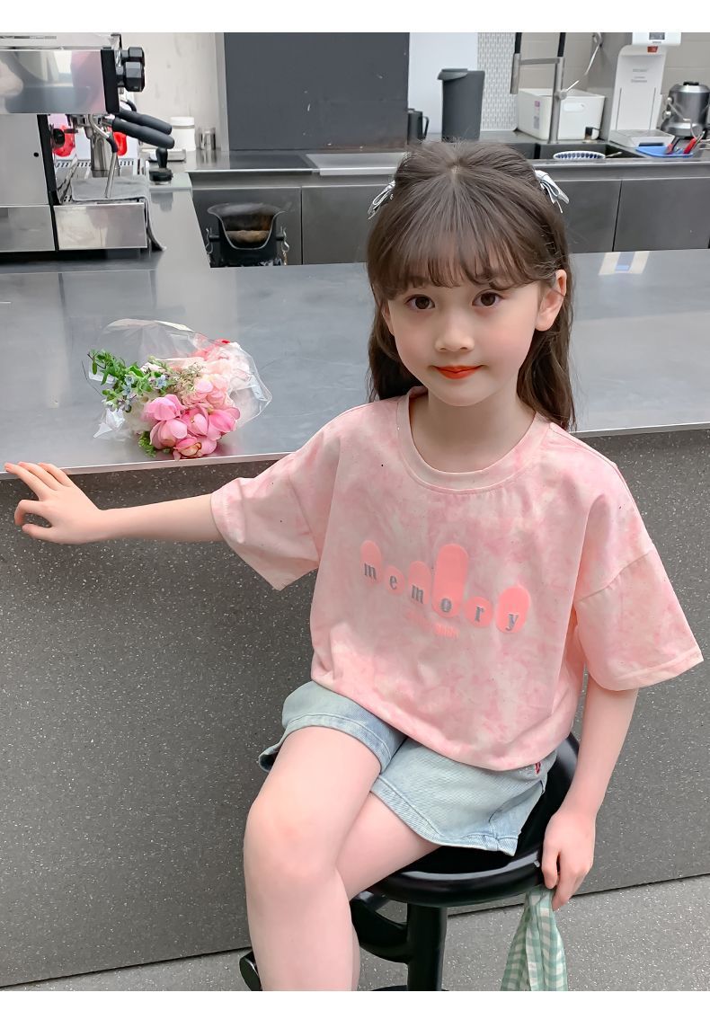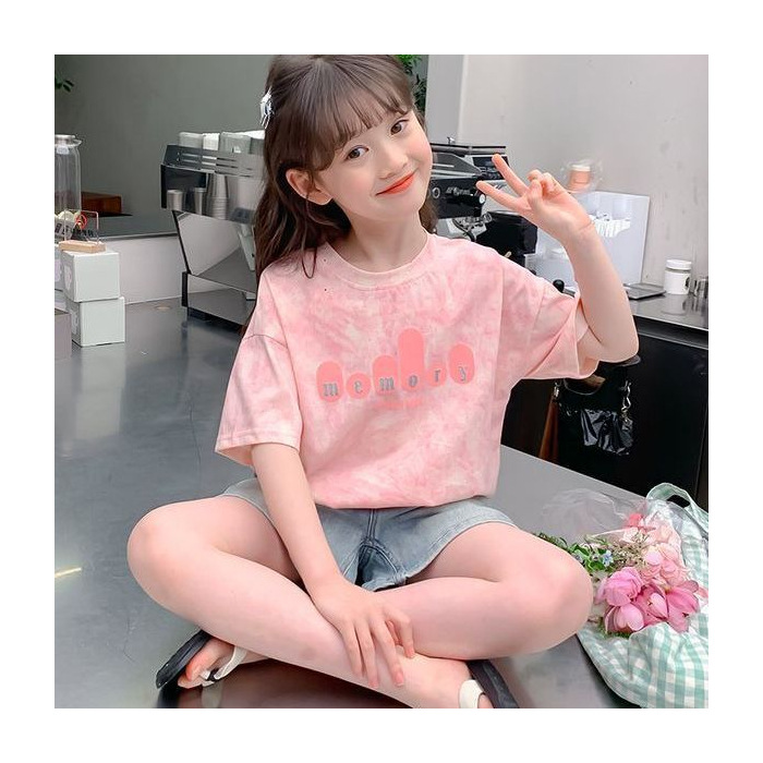 여자 넥타이 염색 여름 티셔츠 2025 신식 소녀 여름 빅 어린이 반팔 탑 어린이 반팔 옷스토어 가기