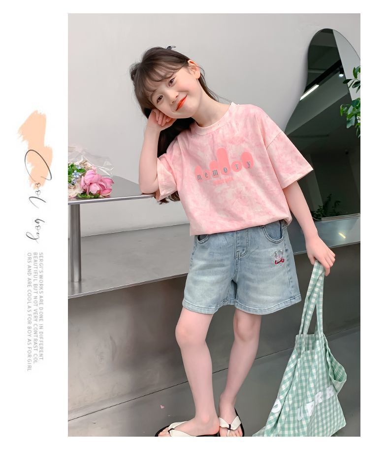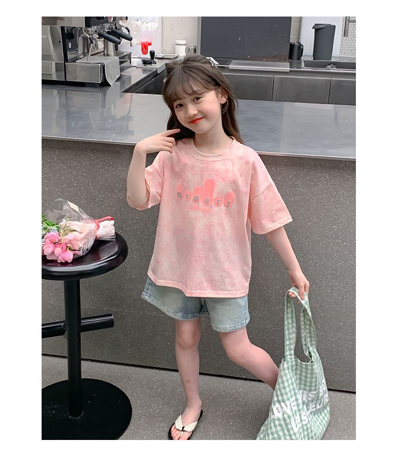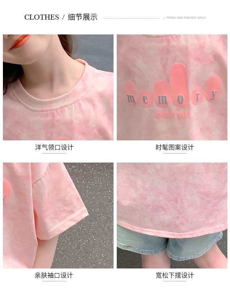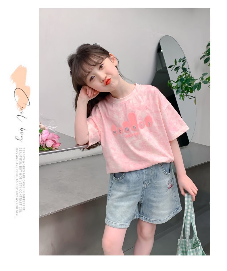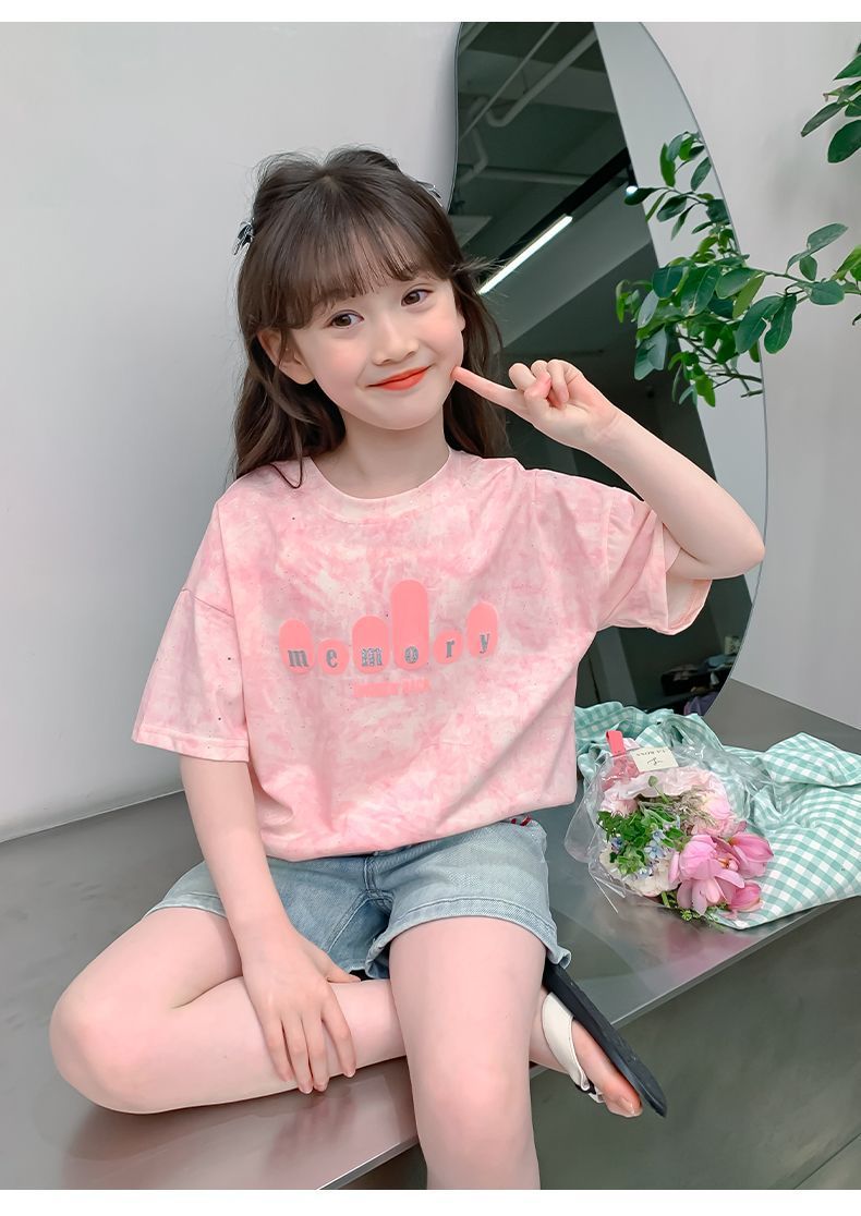 여자 넥타이 염색 여름 티셔츠 2025 신식 소녀 여름 빅 어린이 반팔 탑 어린이 반팔 옷스토어 가기
