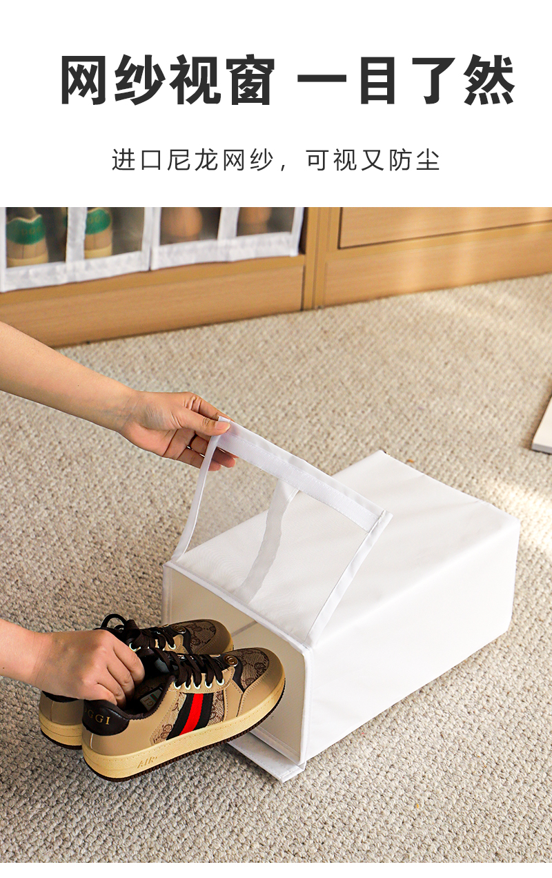 패브릭 신발 스토리지 박스 가정용 신발 랙 스니커즈 방진 마감 상자 비주얼 스택 가능한 서랍 형 스토리지 아티팩트스토어 가기