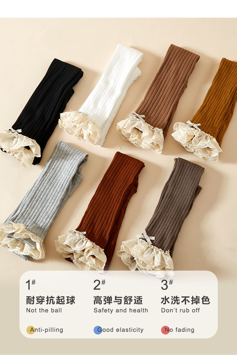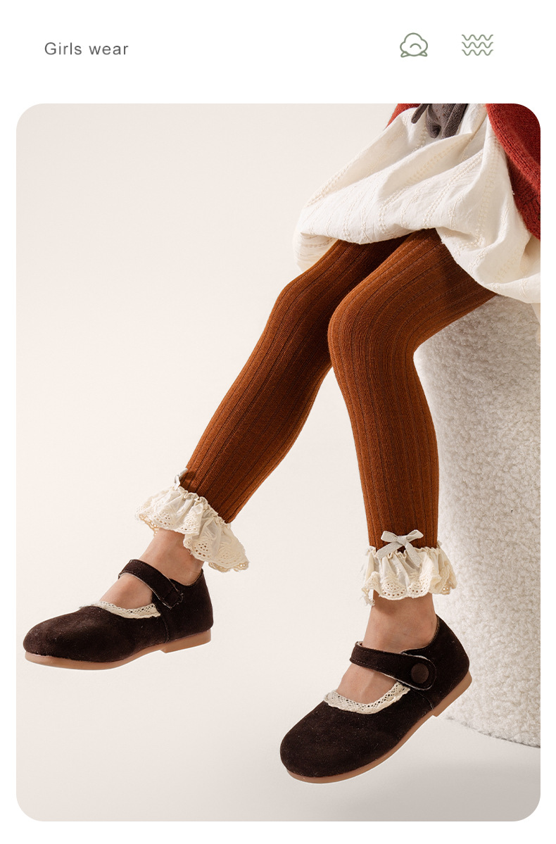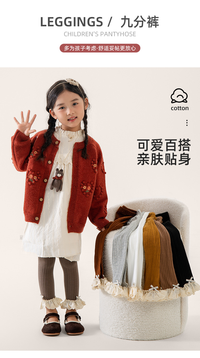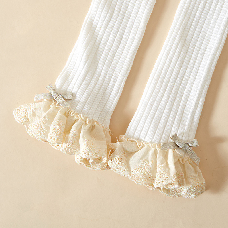봄 새로운 빈티지 와이드 레이스 어린이 발목 길이 바지 여자 외부 레깅스 작은 활 아기 팬티 스타킹