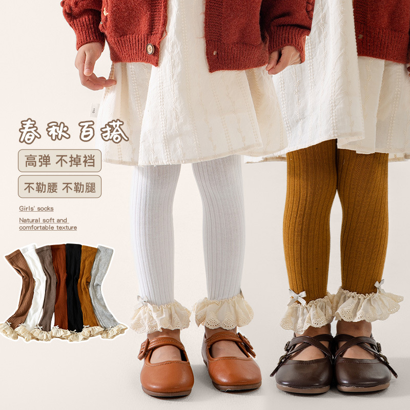봄 새로운 빈티지 와이드 레이스 어린이 발목 길이 바지 여자 외부 레깅스 작은 활 아기 팬티 스타킹스토어 가기