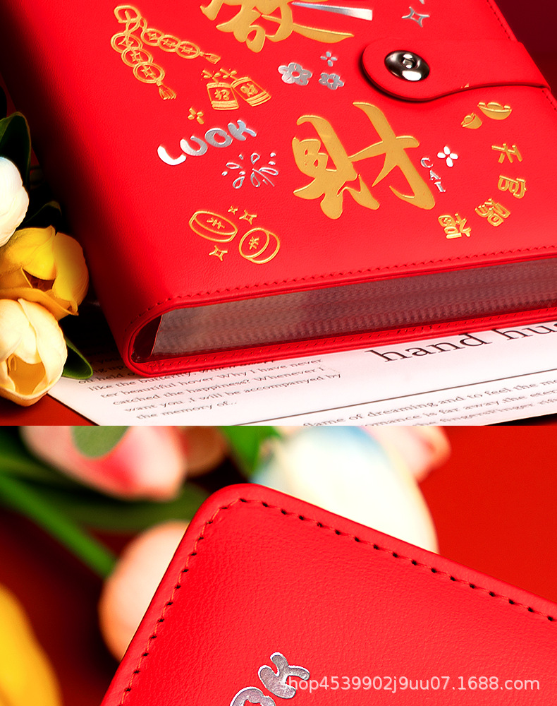 • 사각코일버튼 [부자되세요] 돈저금북-레드 (50장)