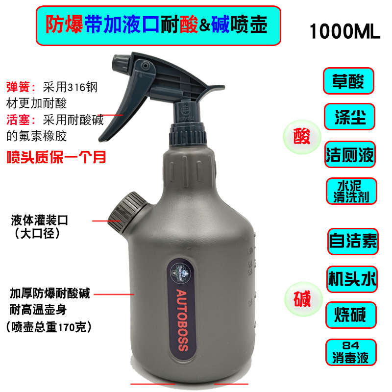 • 액체 충전 포트가 있는 방폭형 산 및 알칼리 방지 스프레이 병 1000ML, 10개 구매 시 1개 무료 제공