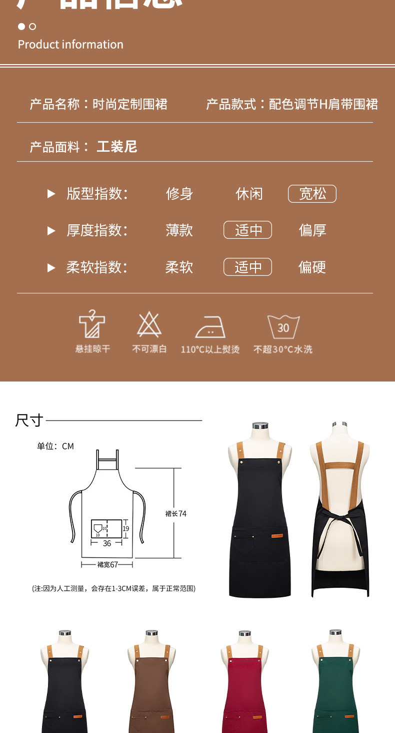 공장 도매 앞치마 케이터링 슈퍼마켓 과일 우유 차 핫팟 가게 그물 빨간 캔버스 방수 어깨 끈 바지 인쇄