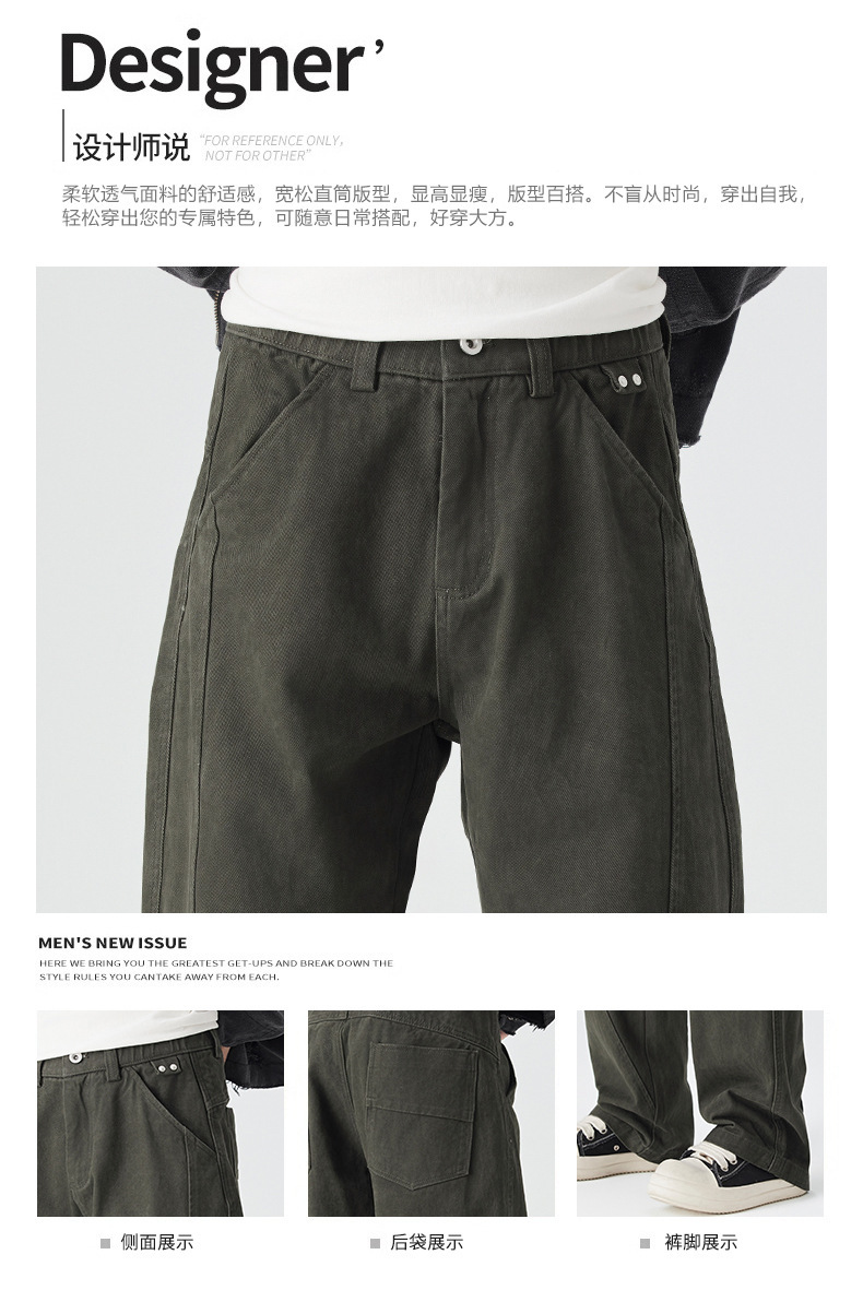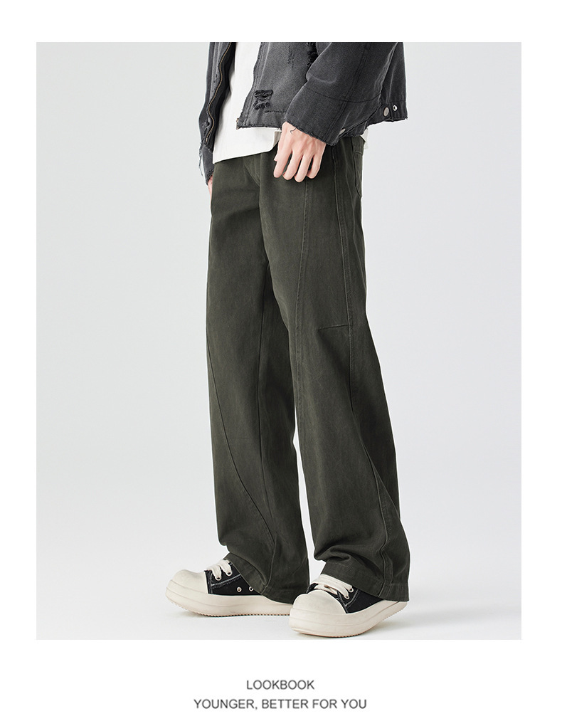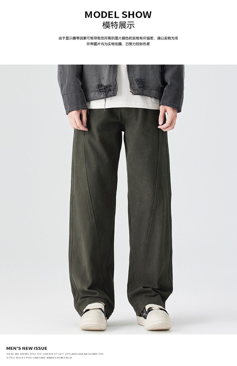 봄과 가을 트렌디 브랜드 느슨한 대형 스트레이트 남성 캐주얼 바지 순수 코튼 아메리칸 스타일 하이 스트리트 토레 바지 넓은 다리 바지 남성 트렌디스토어 가기