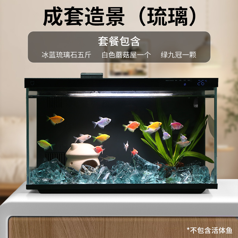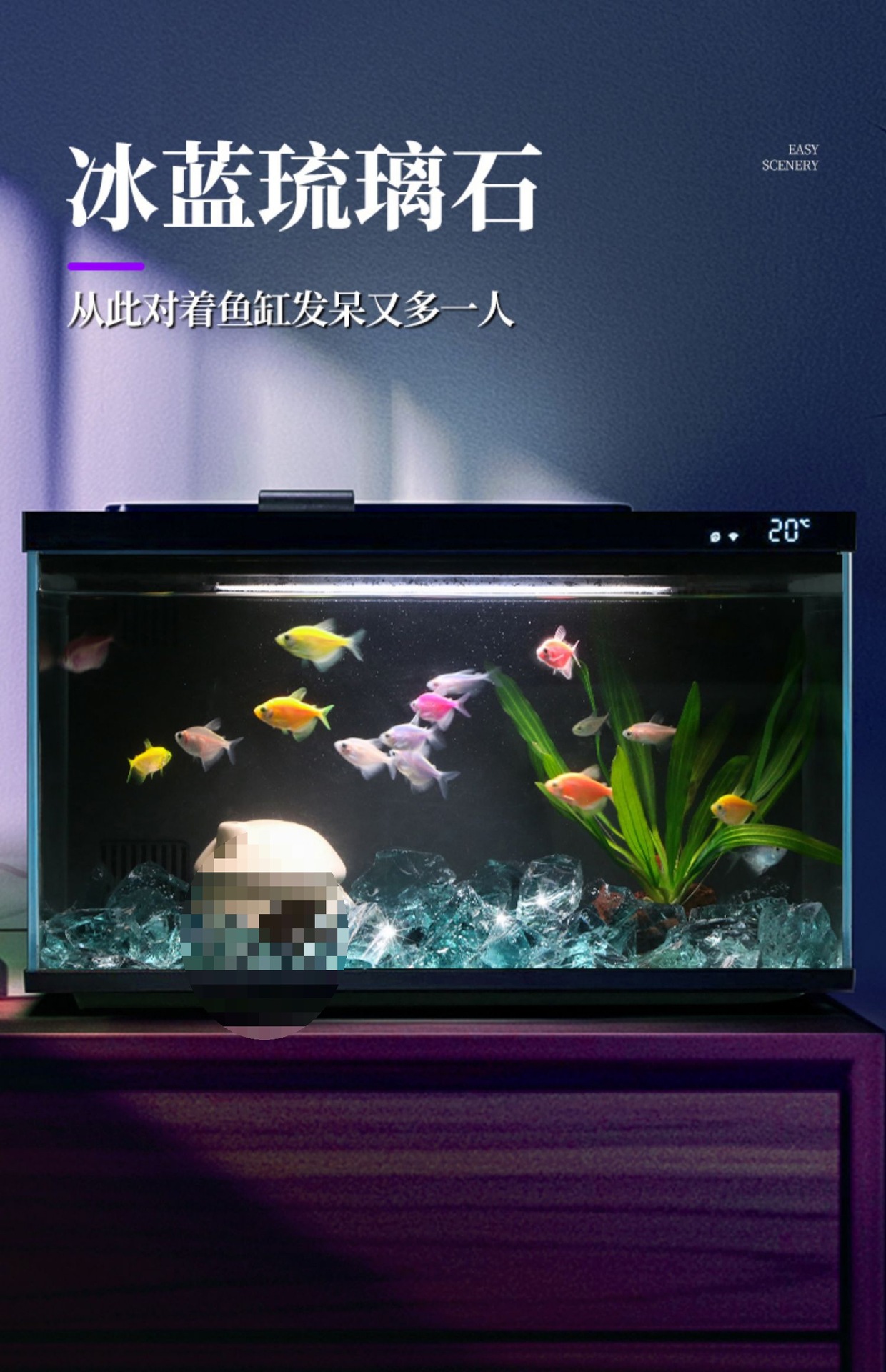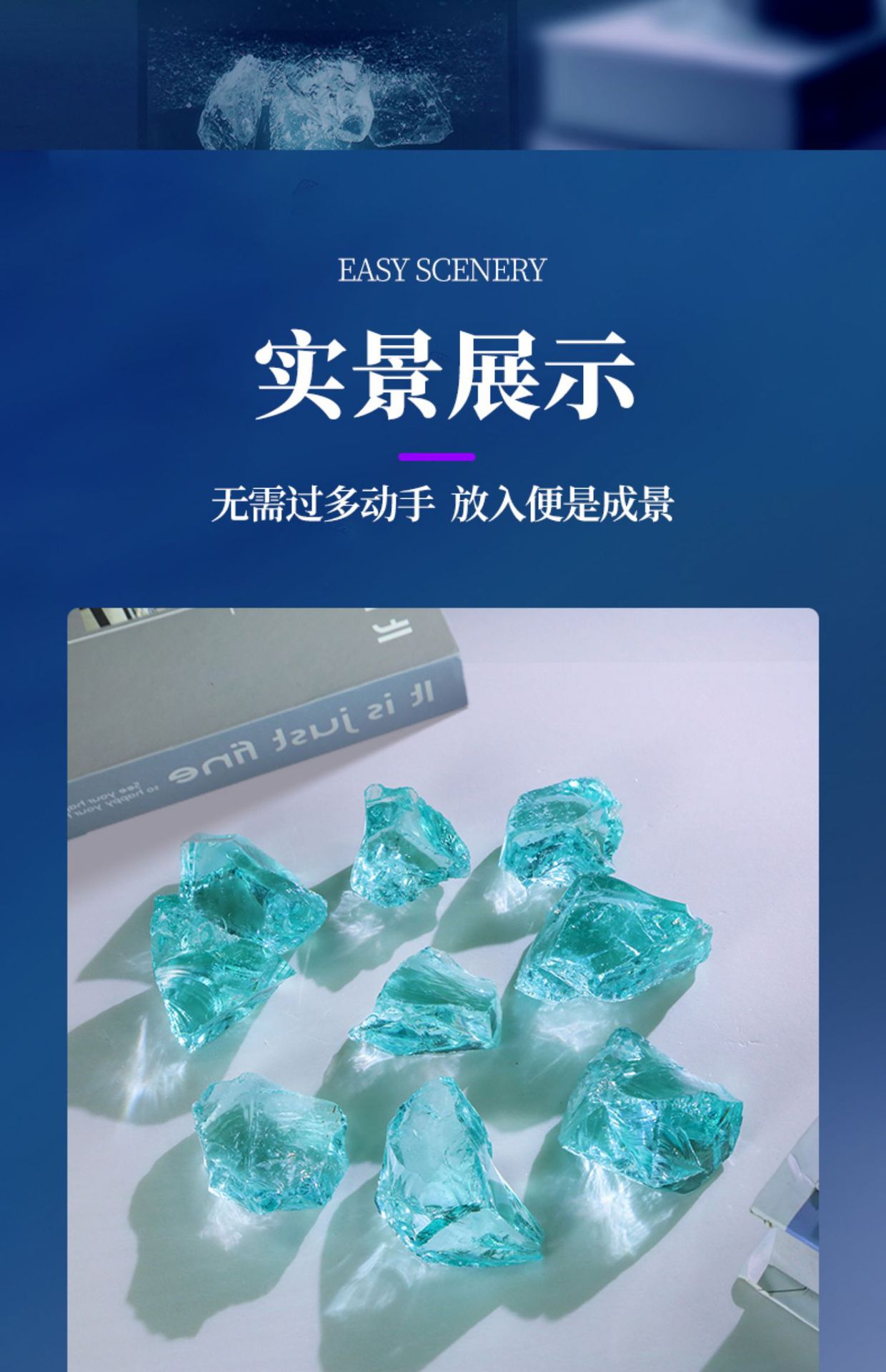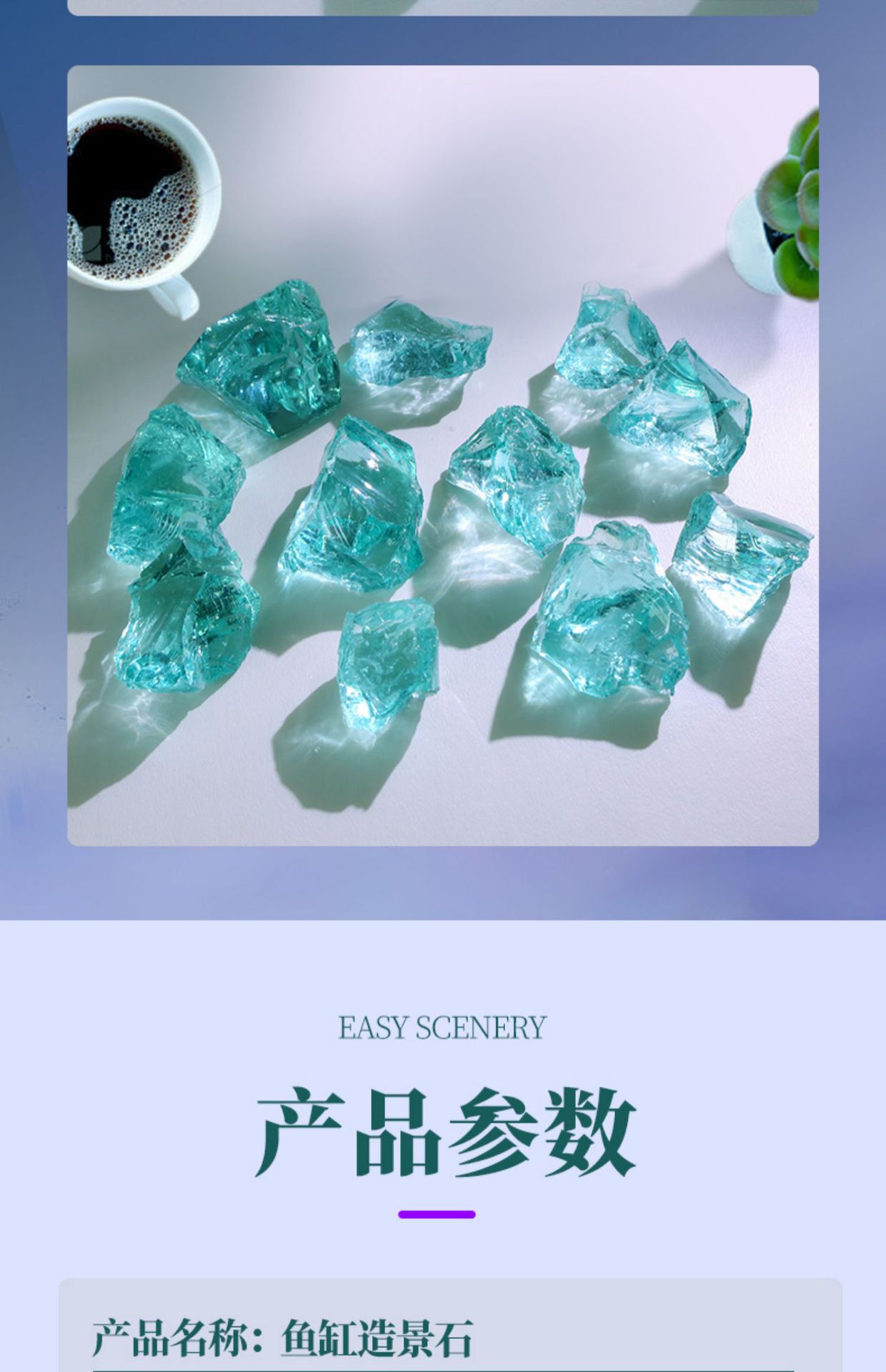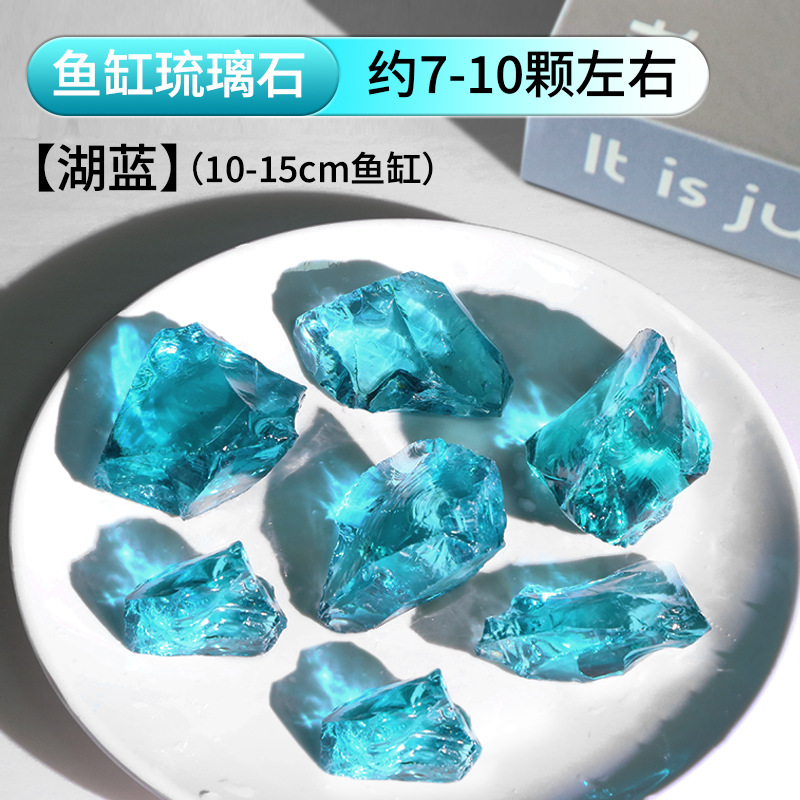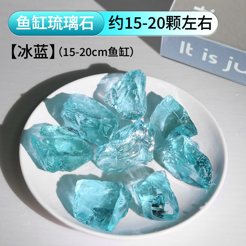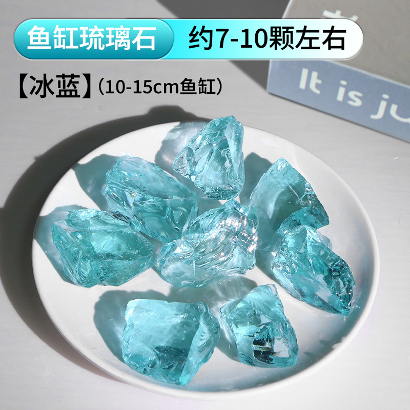 물고기 탱크 풍경 생태 작은 장식품 아이스 블루 유리 크리스탈 수족관 양동이 물고기 탱크 창조적 인 장식 쌀 풍경 돌