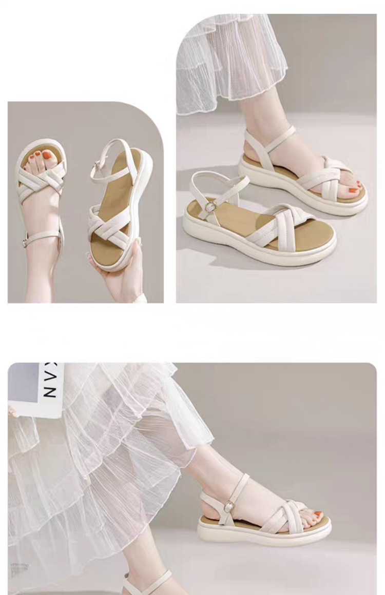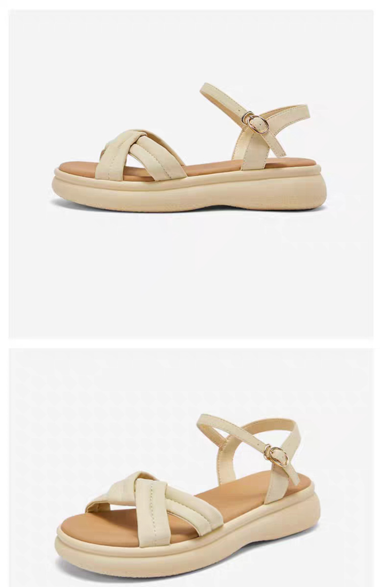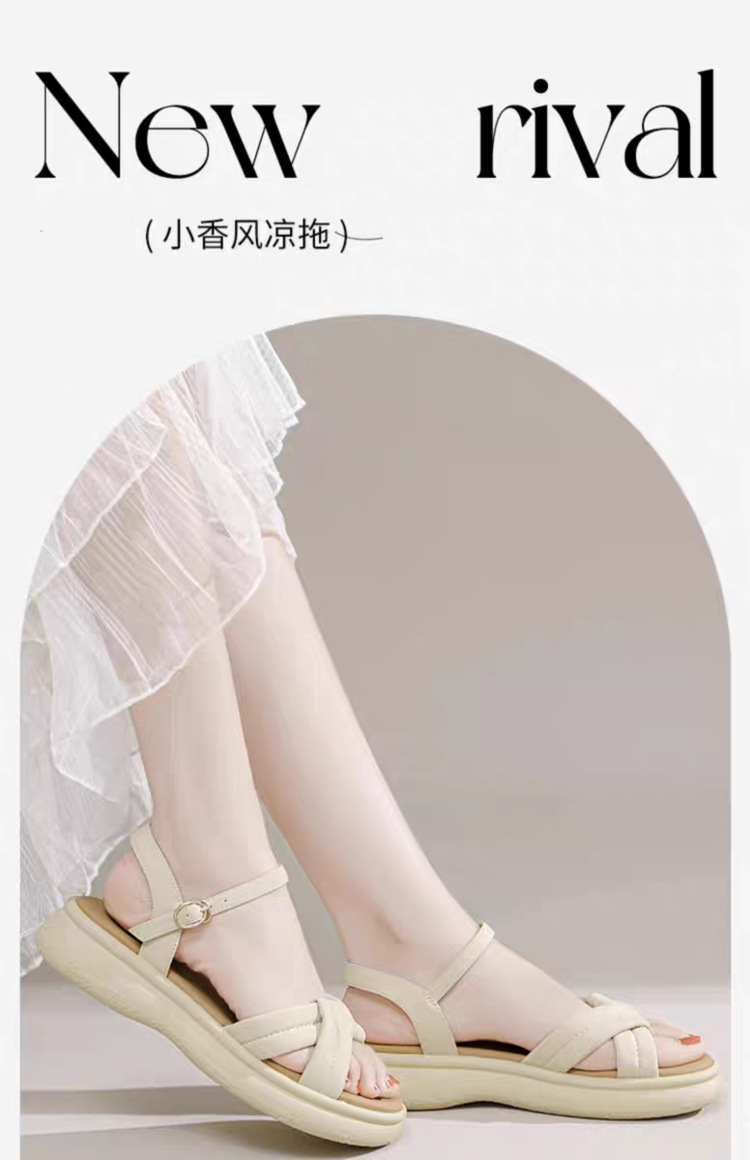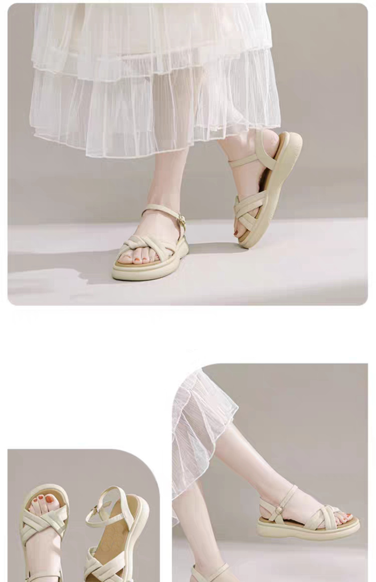 임산부 샌들 여성의 새로운 도착 2025 여름 의상 올매치 페어리 스타일 우아한 샌들 소프트 단독 미끄럼 샌들