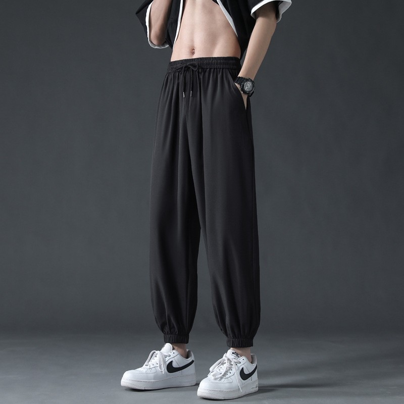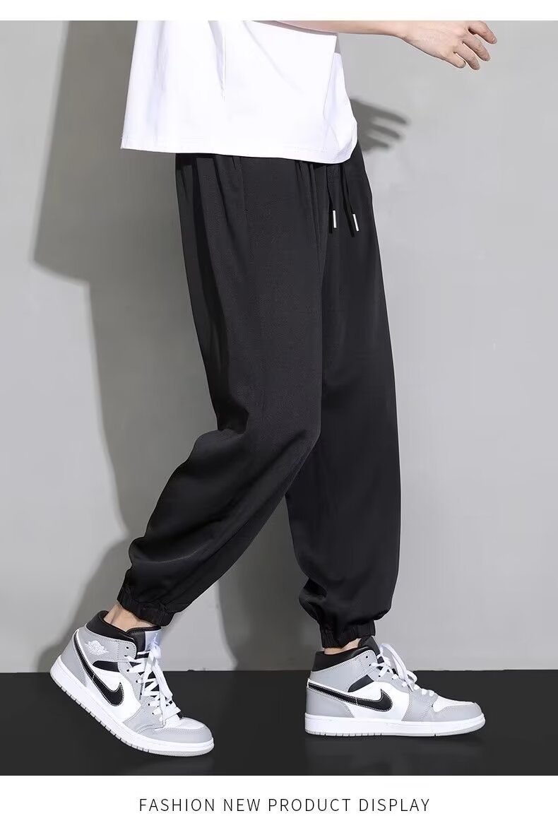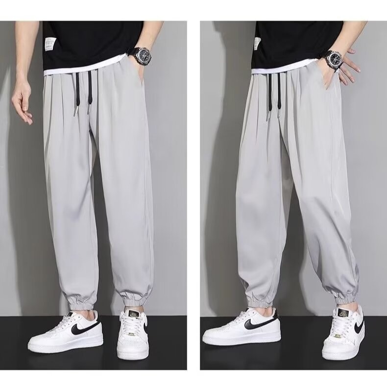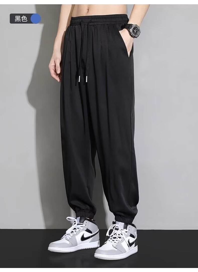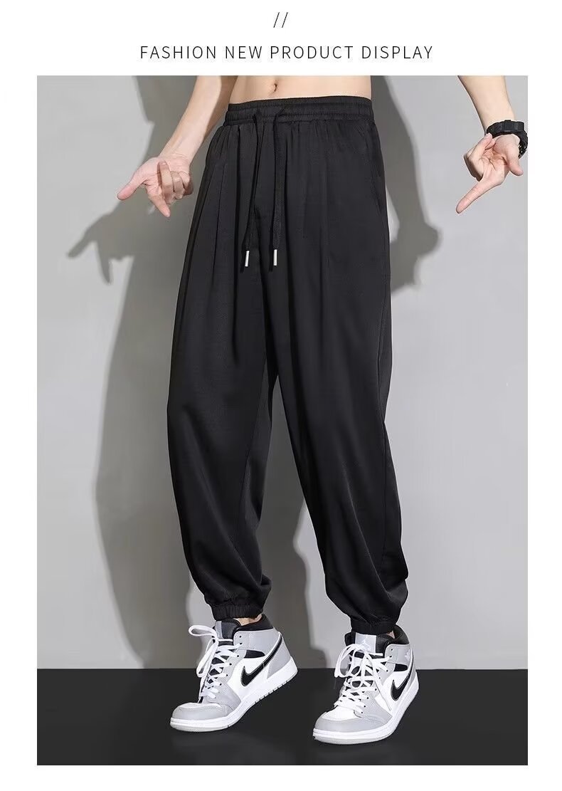 아이스 실크 랜턴 바지 남자 여름 얇은 땀 바지 높은 허리 바지 모든 경기 캐주얼 바지 트렌디 엘랩스토 느슨한 바지