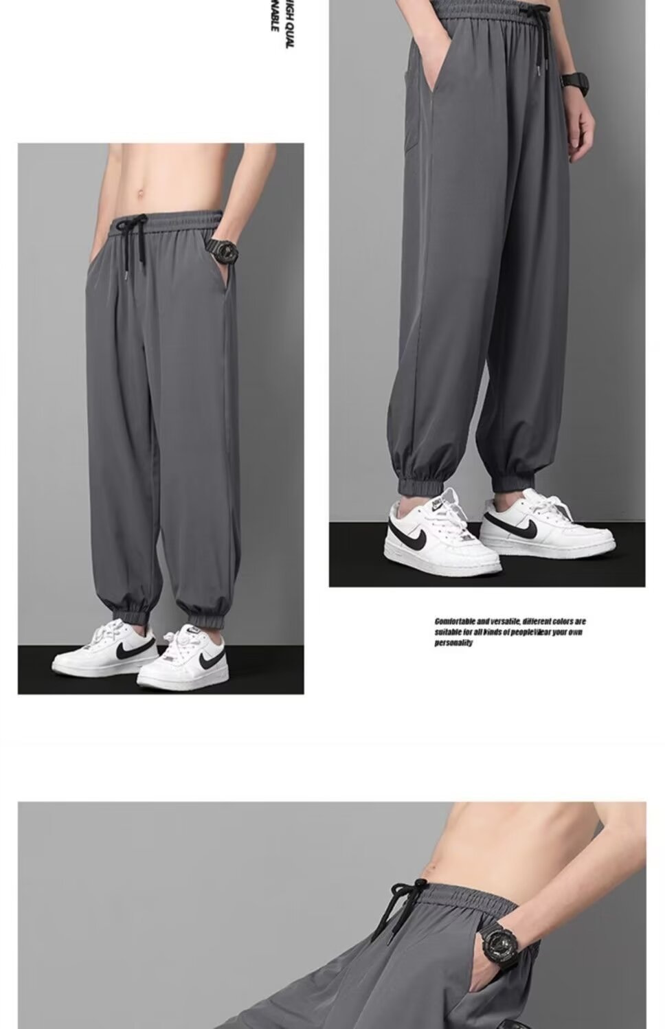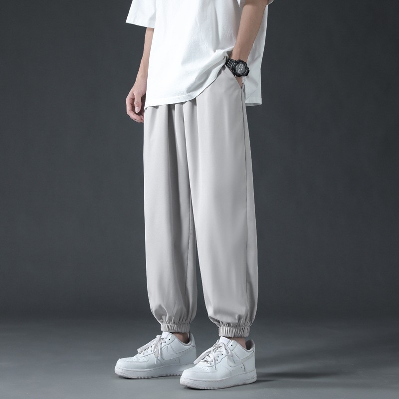 아이스 실크 랜턴 바지 남자 여름 얇은 땀 바지 높은 허리 바지 모든 경기 캐주얼 바지 트렌디 엘랩스토 느슨한 바지스토어 가기