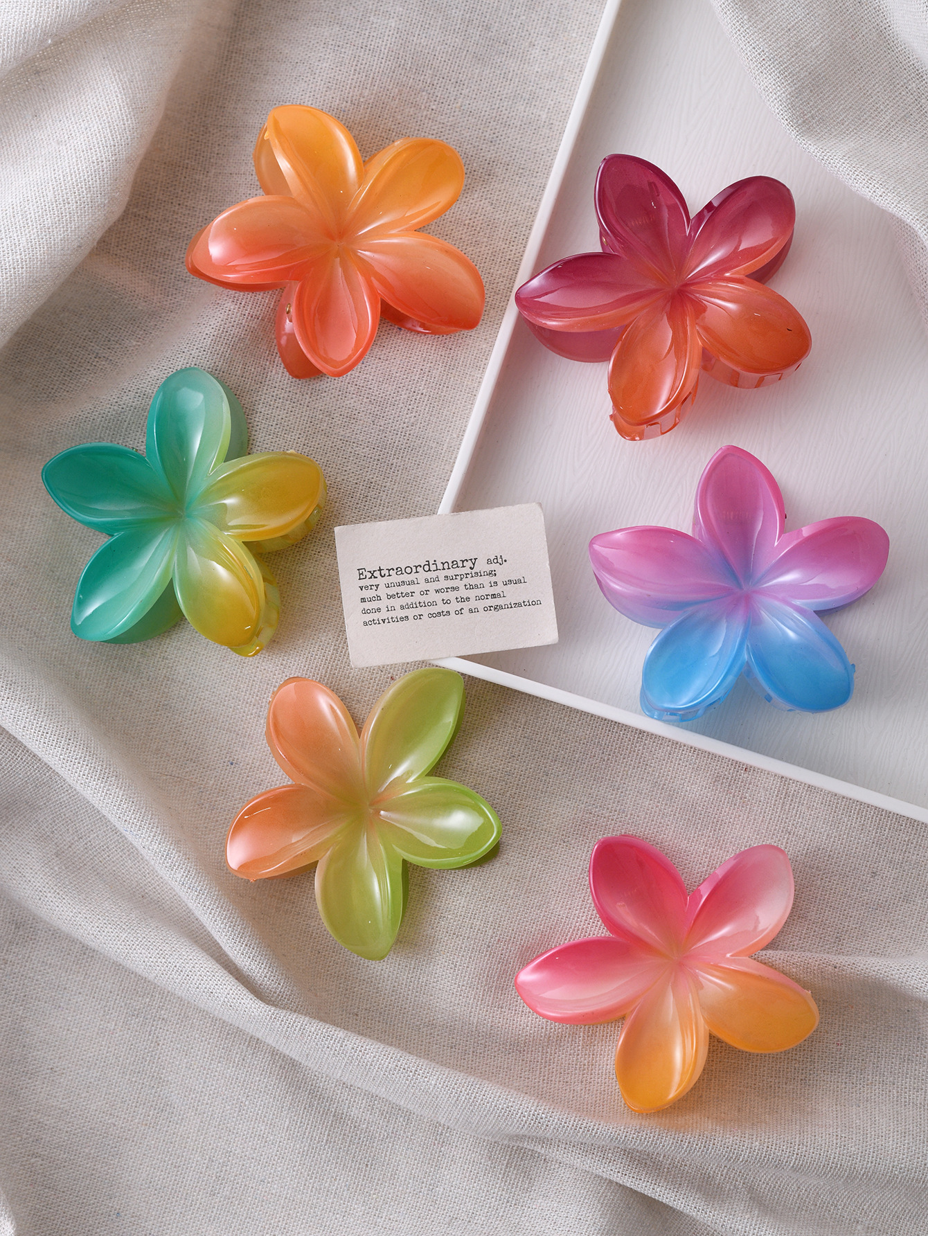 欧美跨境彩色渐变高品质鸡蛋花发夹女亚马逊紫荆花后脑勺盘发抓夹