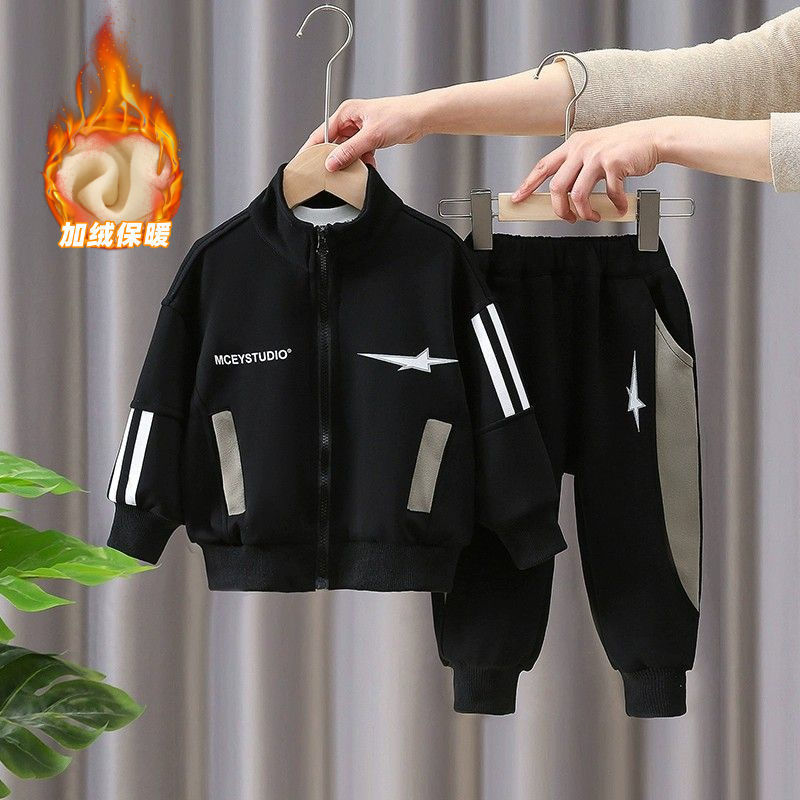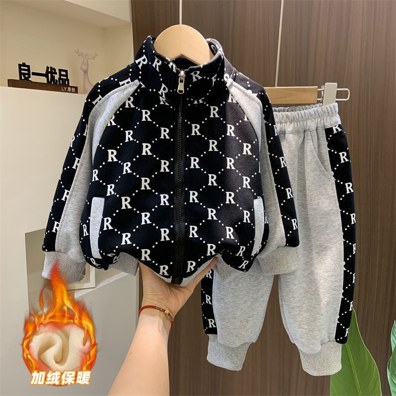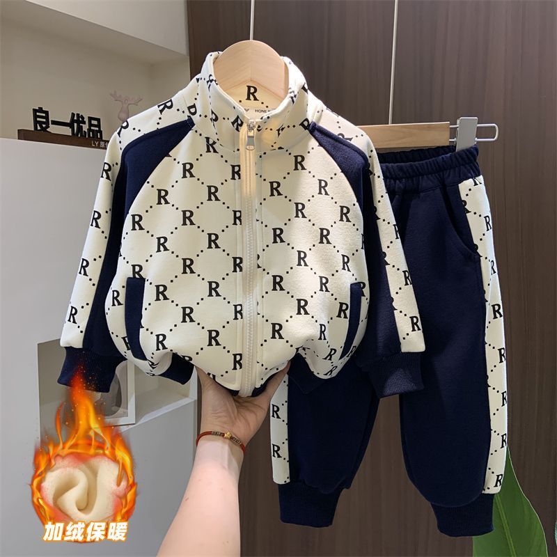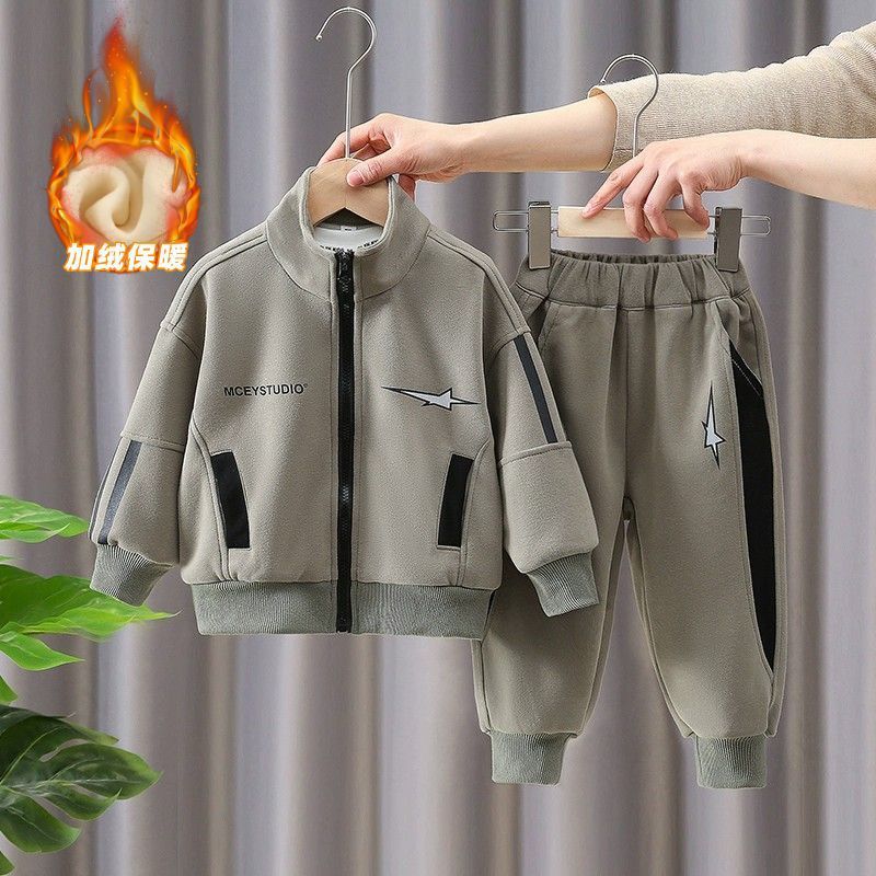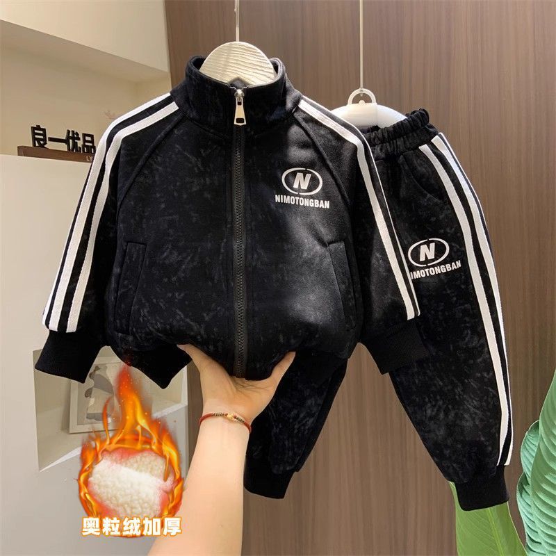 소년 가을 스포츠웨어 세트 2024 새로운 어린이 가을과 겨울 아기 기모 아동복 소년 옷 쿨스토어 가기