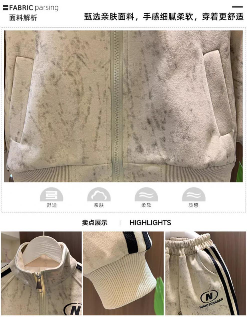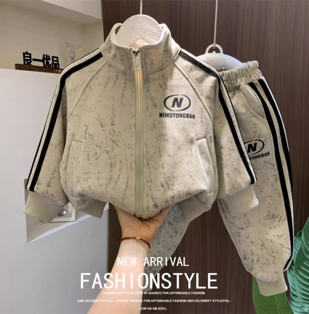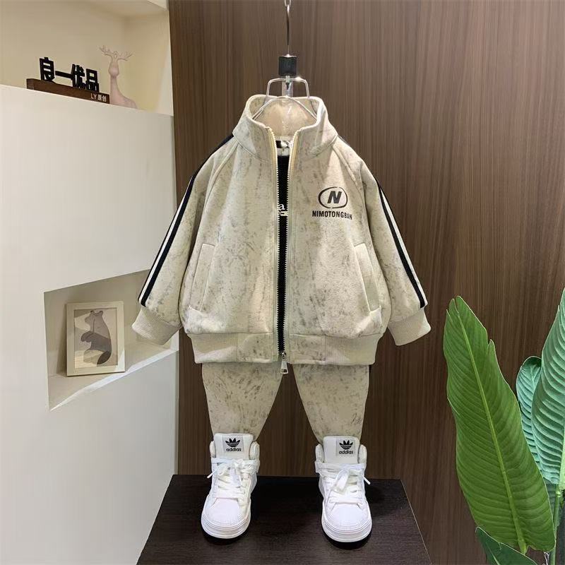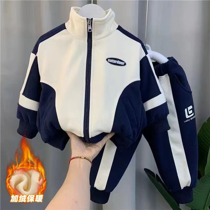 소년 가을 스포츠웨어 세트 2024 새로운 어린이 가을과 겨울 아기 기모 아동복 소년 옷 쿨스토어 가기