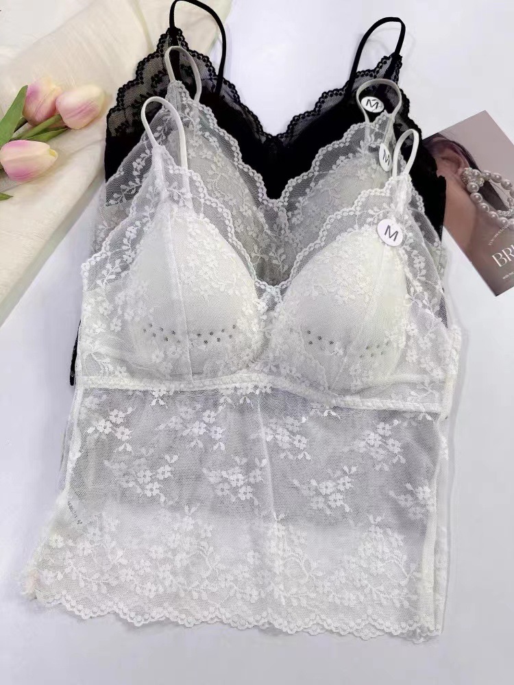 프랑스 스타일 레이스 아름다운 백 슬링 속옷 여성의 봄과 여름 얇은 가슴 패드 원피스 컵 내베이스 중간 길이의 속옷