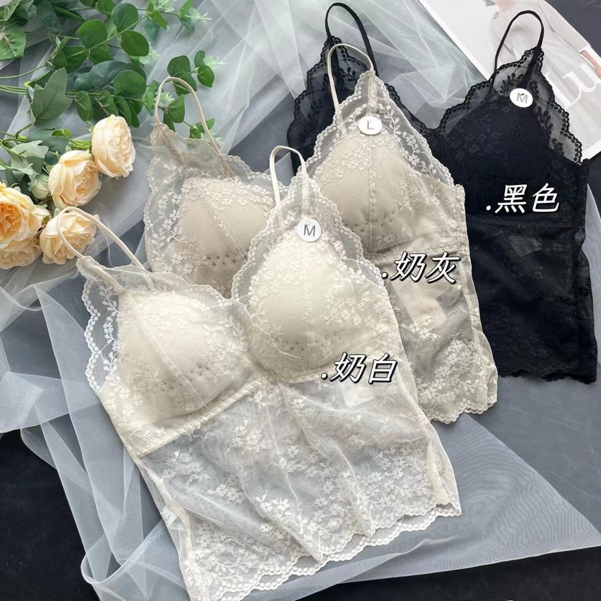 프랑스 스타일 레이스 아름다운 백 슬링 속옷 여성의 봄과 여름 얇은 가슴 패드 원피스 컵 내베이스 중간 길이의 속옷스토어 가기