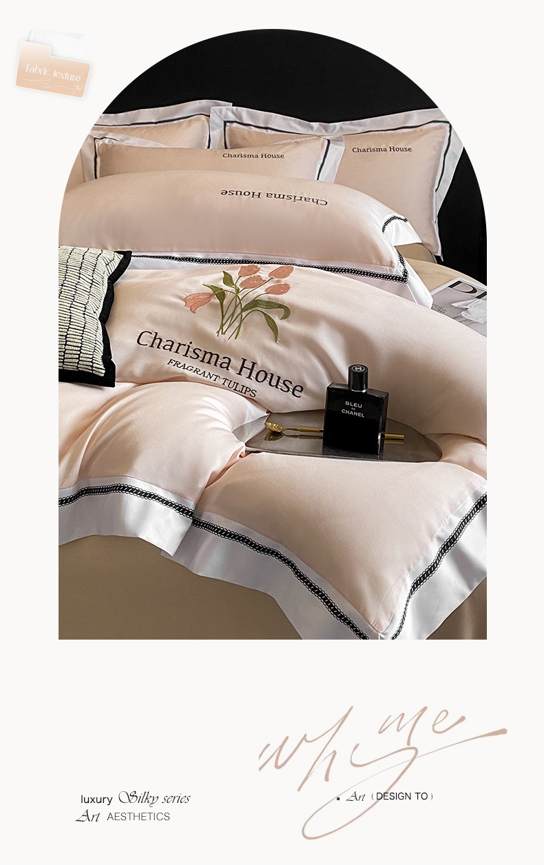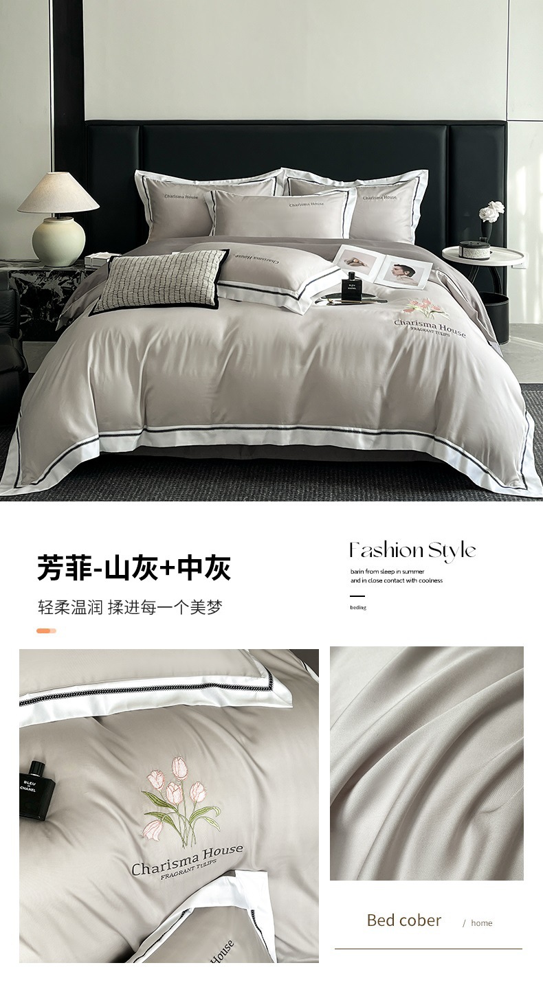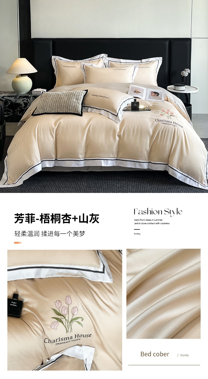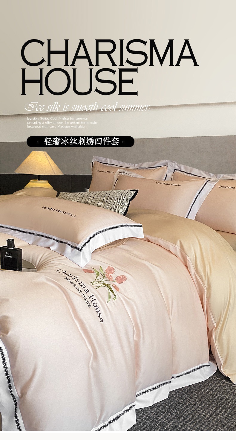 2025 새로운 고급 세척 아이스 실크 이불 커버 침대 린넨 침구 4 피스 세트-밀 그라스 시리즈스토어 가기