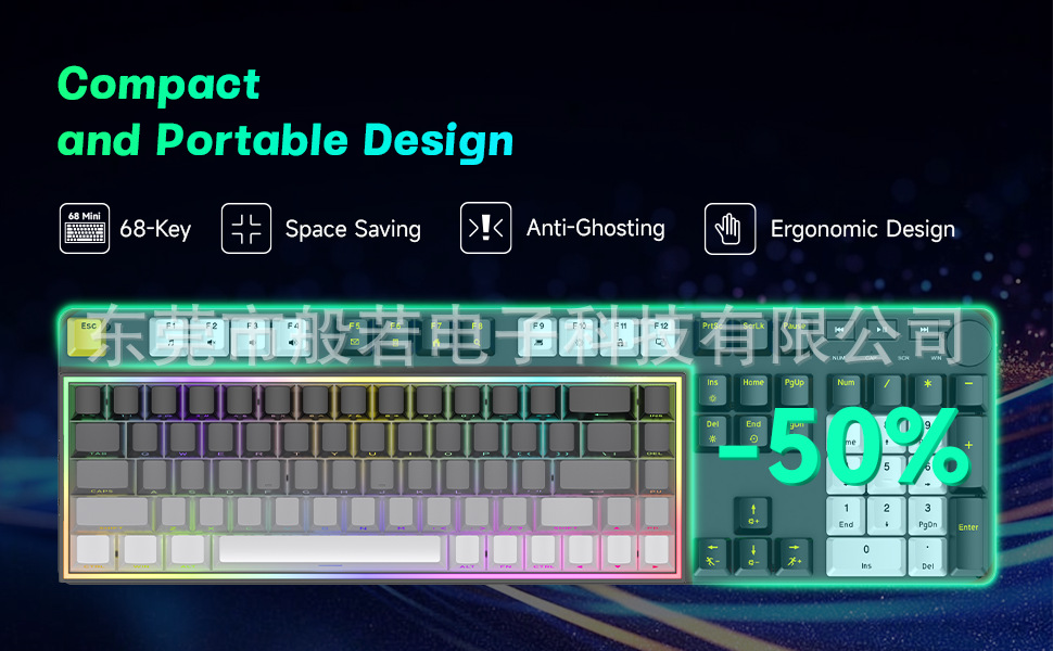 卖点:小巧便携,节省空间,具有多功能组合键,青轴符有清脆的敲击声,明显的段落感 ,提升了打字体验,高性价比和个性化设计,成为办公.游戏和移动办公用户的理想选择