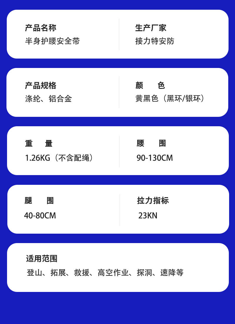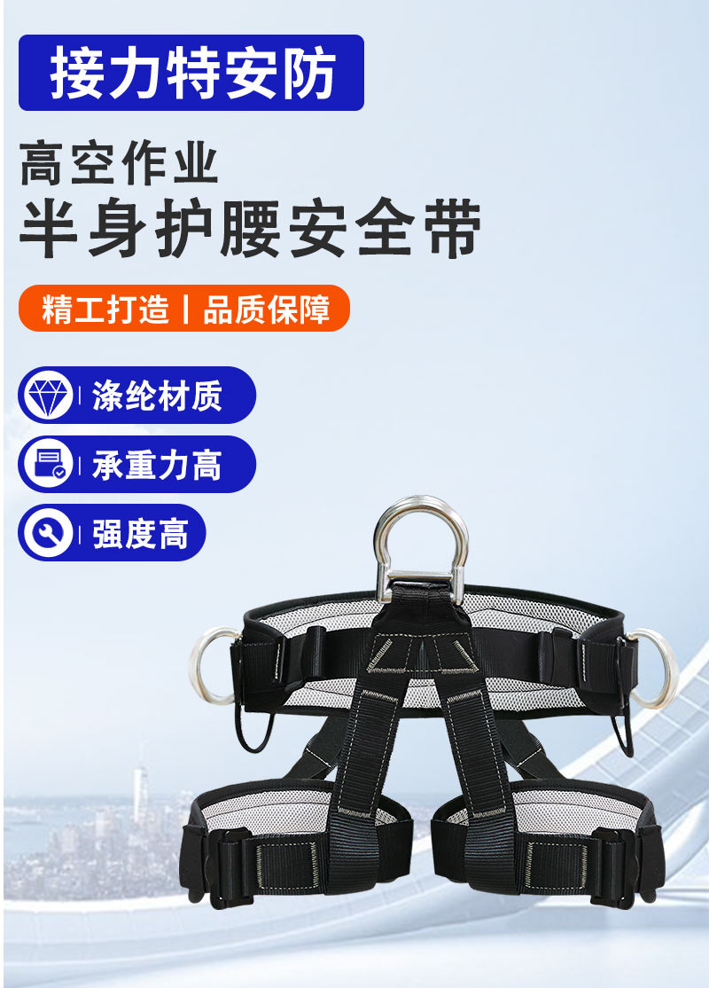 내마모성 암벽 등반 빠른 드롭 반체 허리 보호 안전 벨트 폴리 에스테르 알루미늄 합금 소재 야외 구조 높은 고도 작업스토어 가기