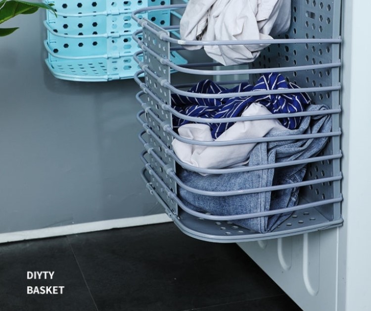 더러운 옷 바구니 벽에 매달려 접이식 가정용 옷 변경 튜브 블루 바구니 욕실 벽 교수형 북유럽 플라스틱 보관 유물스토어 가기