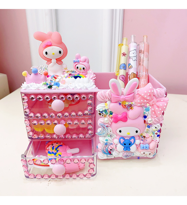 창조적 인 어린이 수제 재료 가방 크림 접착제 다이아몬드 페이스트 저장 펜 홀더 학생 소녀 선물