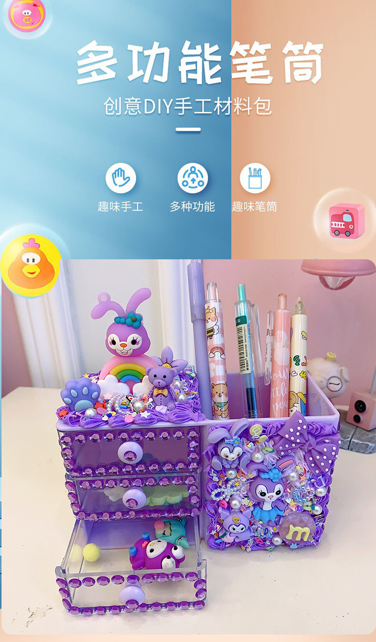 창조적 인 어린이 수제 재료 가방 크림 접착제 다이아몬드 페이스트 저장 펜 홀더 학생 소녀 선물스토어 가기