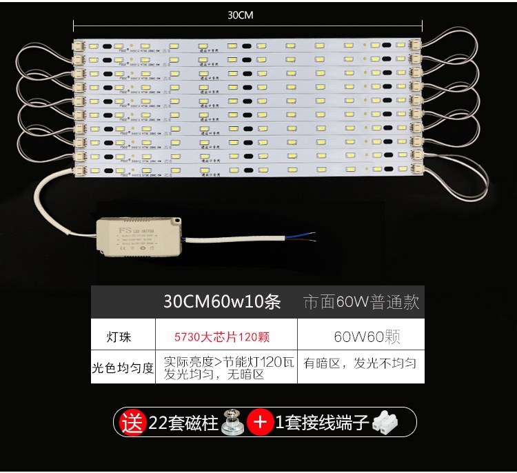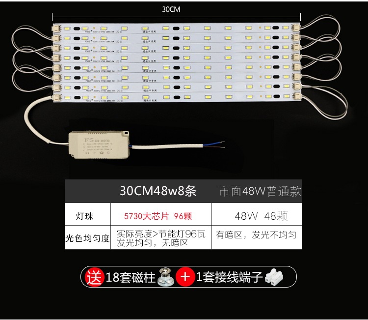 LED 천장 램프 스트립 램프 교체 심지 자석 단색 라이트 바 흰색 램프 스트립 라이트 패널