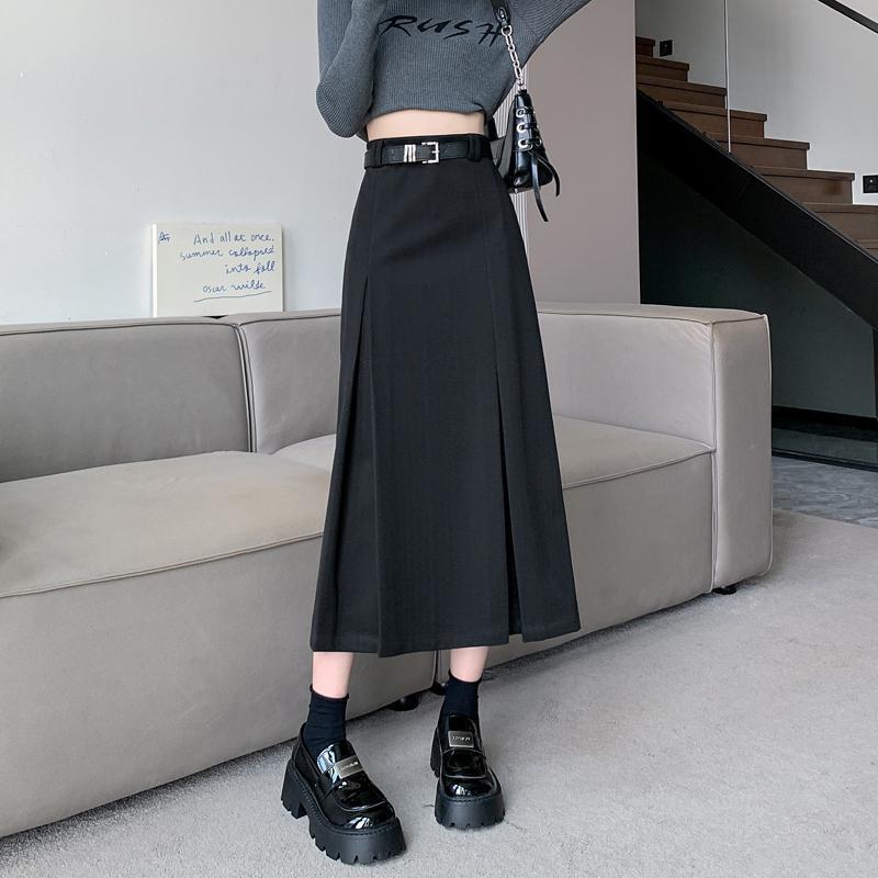 모직 스커트 여성의 가을과 겨울 2025 새로운 캐주얼 모직 스트레이트 스커트 투약 A-라인 스커트 높은 허리 엉덩이 스커트스토어 가기