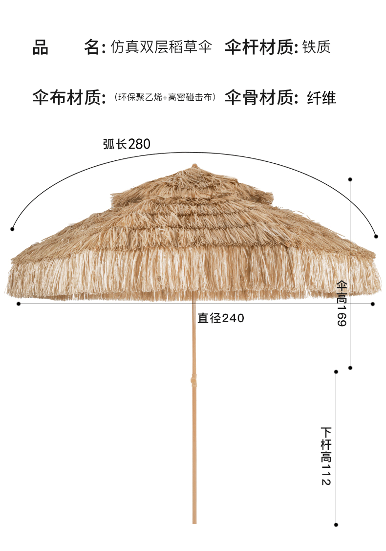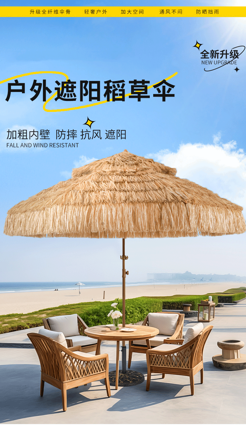 야외 코트야드 가든 햇빛 그늘 급빛 우산 홈스테이 인터넷 레드 호텔 캠핑 스톨 더블 레이어 시뮬레이션 밀짚 우산