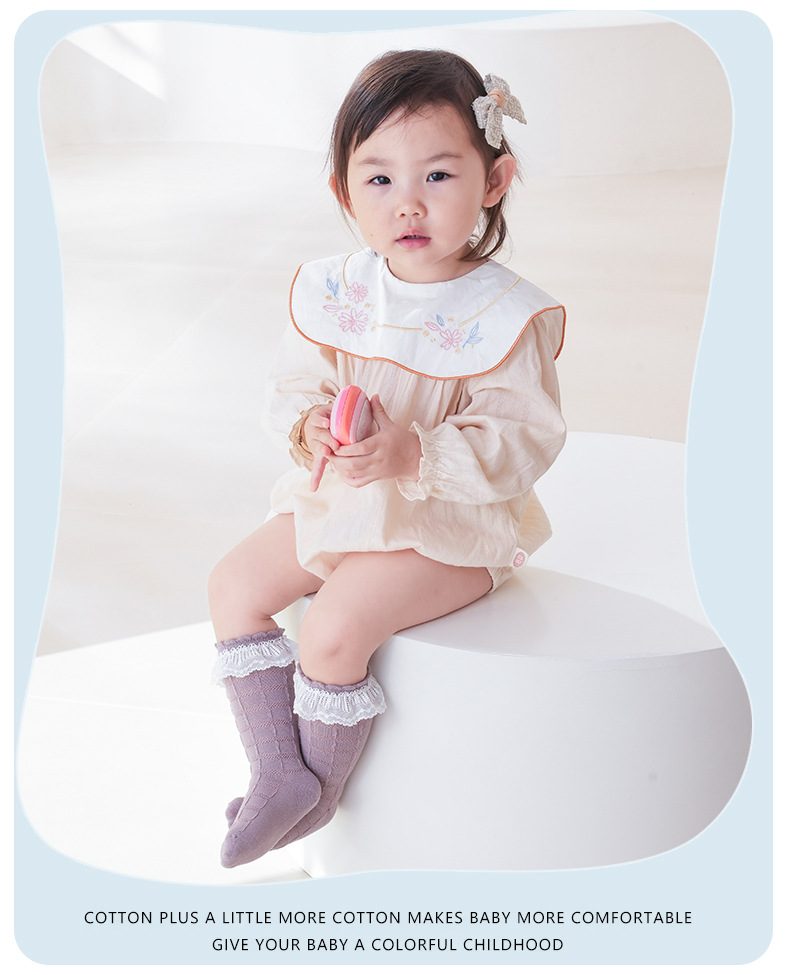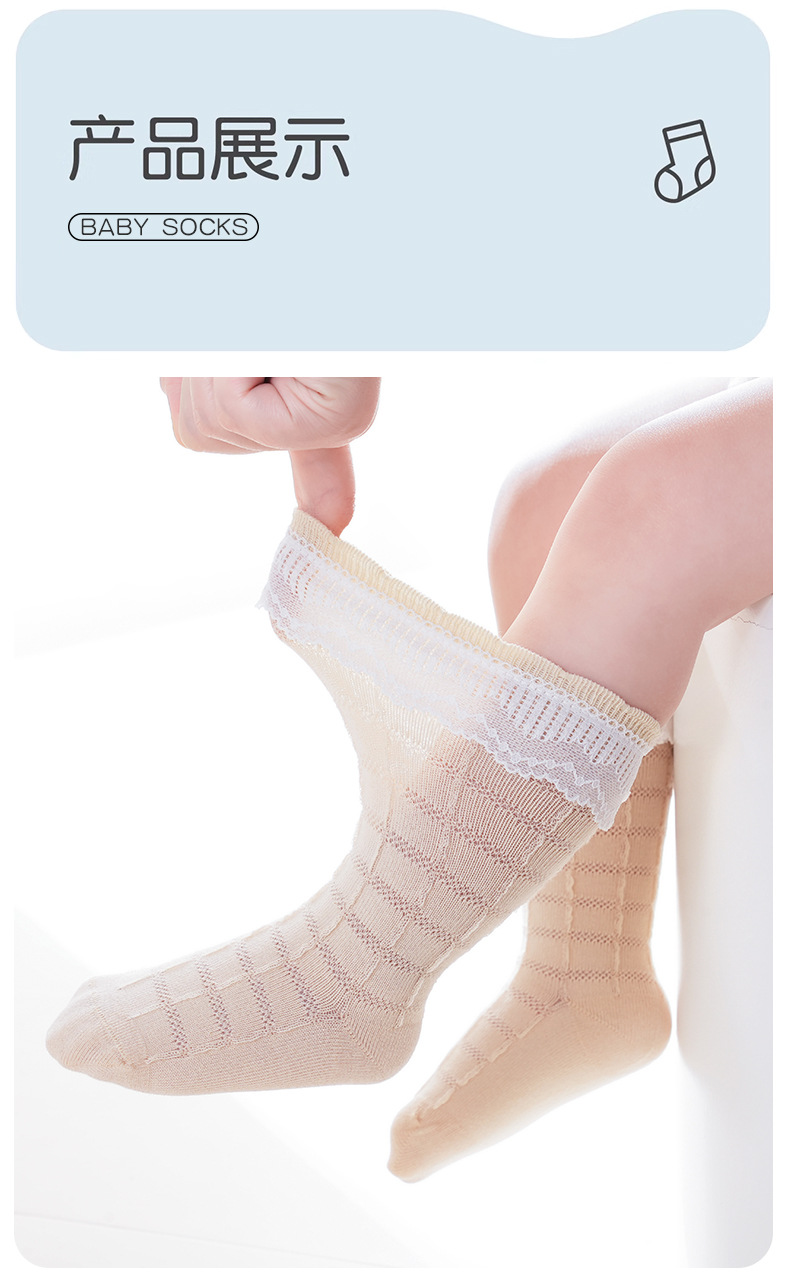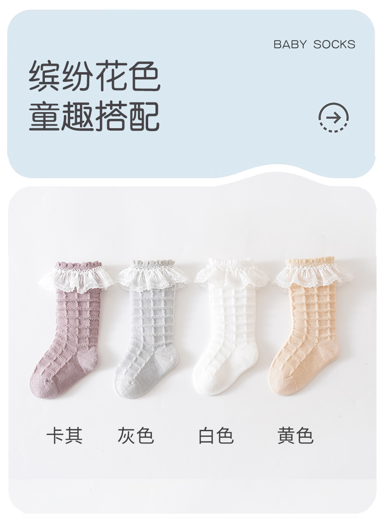 Xiyujia 봄과 여름 아기 양말 통기성 클래스 코튼 솔리드 컬러 레이스 프린세스 걸스 미드 튜브 양말 뼈없는 아기 양말