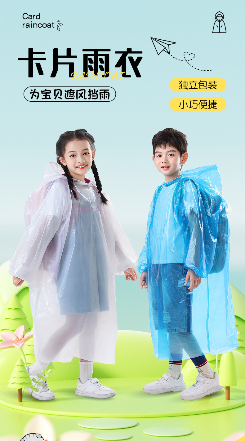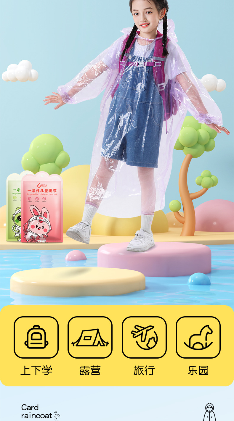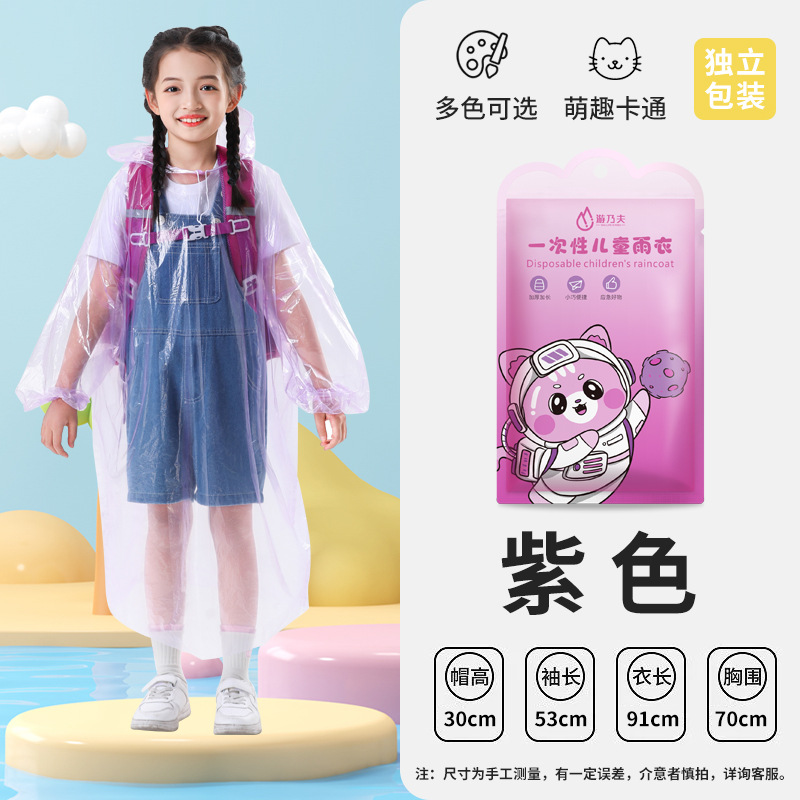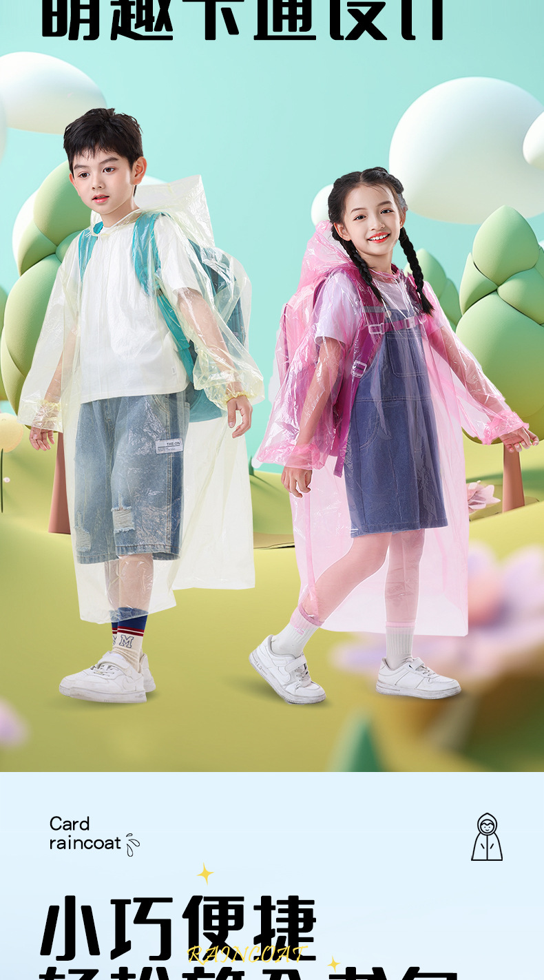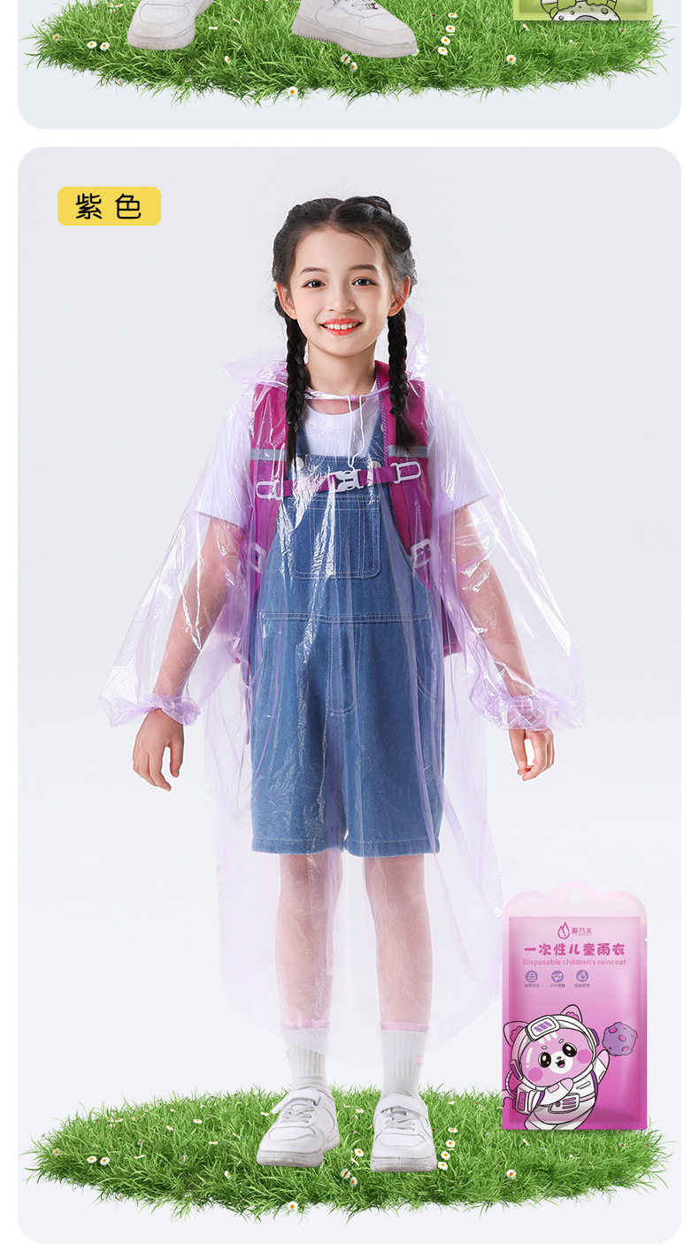 일회용 비옷 어린이 여자 두꺼운 소년 및 초등학생 투명 휴대용 배낭 소녀 하이킹 어린이 판초