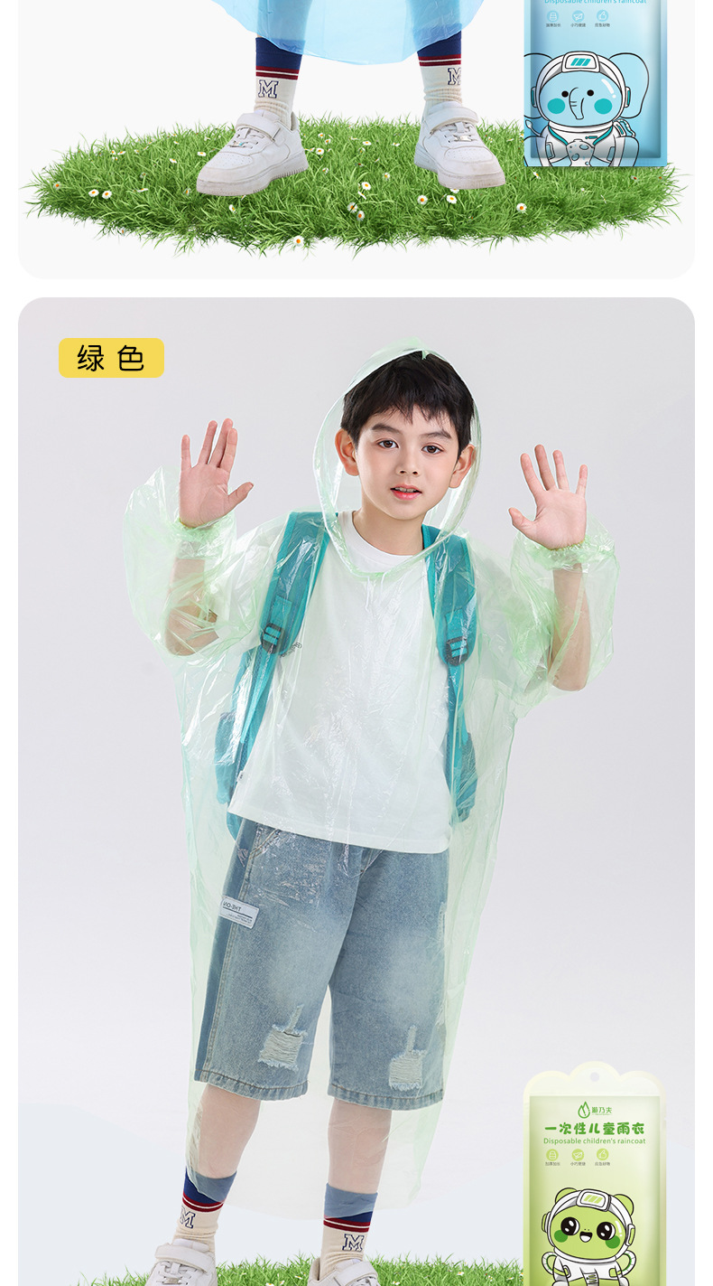 일회용 비옷 어린이 여자 두꺼운 소년 및 초등학생 투명 휴대용 배낭 소녀 하이킹 어린이 판초스토어 가기