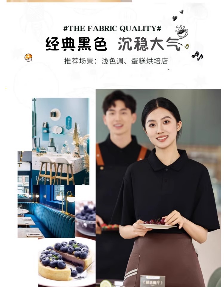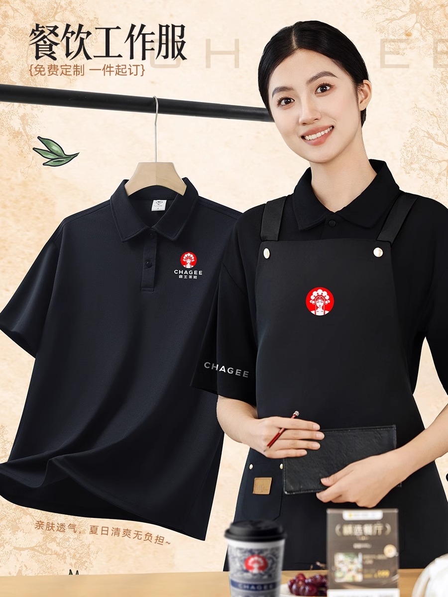케이터링 점원 바지 티셔츠 맞춤형 여름 밀크 티 커피 베이킹 숍 호텔 프론트 오피스 웨이터 반팔 여성 티셔츠