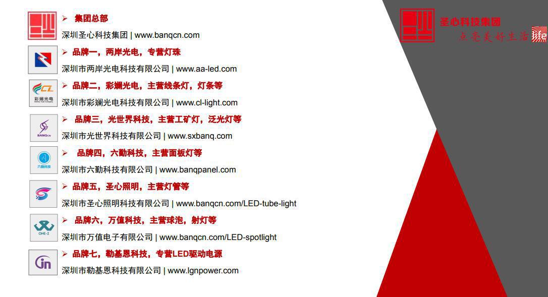 深圳市光世界是深圳市圣心集团旗下子公司之一, 深圳圣心集团成立于2006年, 专业生产LED照明产品,旗下有7家子公司,每家子公司负责一个类型的产品,专业生产LED日光灯,LED灯带,LED泛光灯,LED面板灯,LED氛围灯,LED驱动以及LED灯珠封装。每种类型的产品都有专业研发团队和专业生产人员, 每款产品都是严格按照客户的要求来生产。公司在深圳有2栋楼,在东莞有一个工业园,工厂占地面积30000平方米,现有工人1000人,是真正的生产工厂,欢迎随时来厂参观。