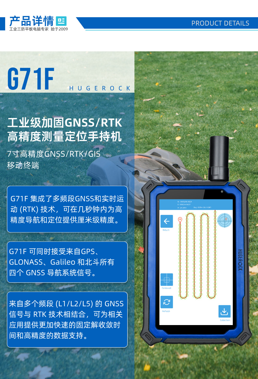 HUGEROCK G71F 고정밀 멀티 모드 듀얼 주파수 모듈 센티미터 레벨 RTK 전원 검사 및 위치 실외 작업