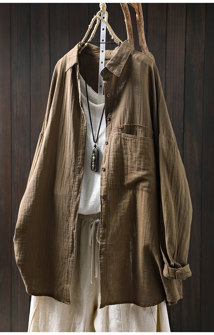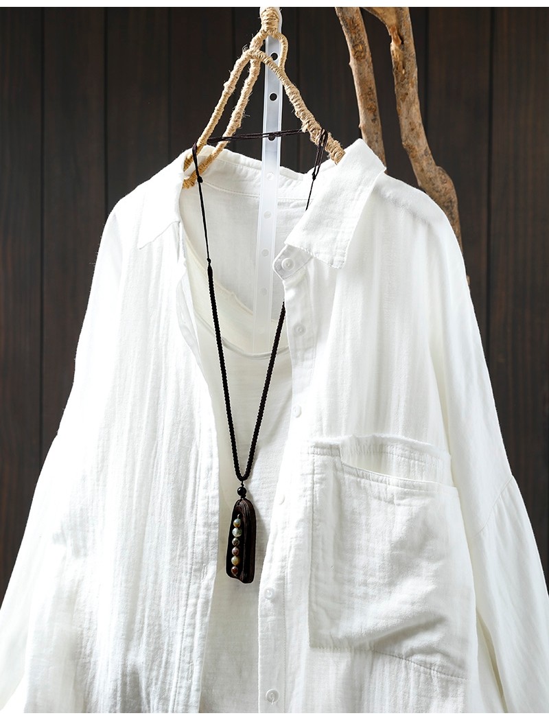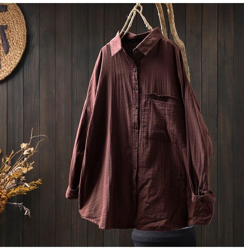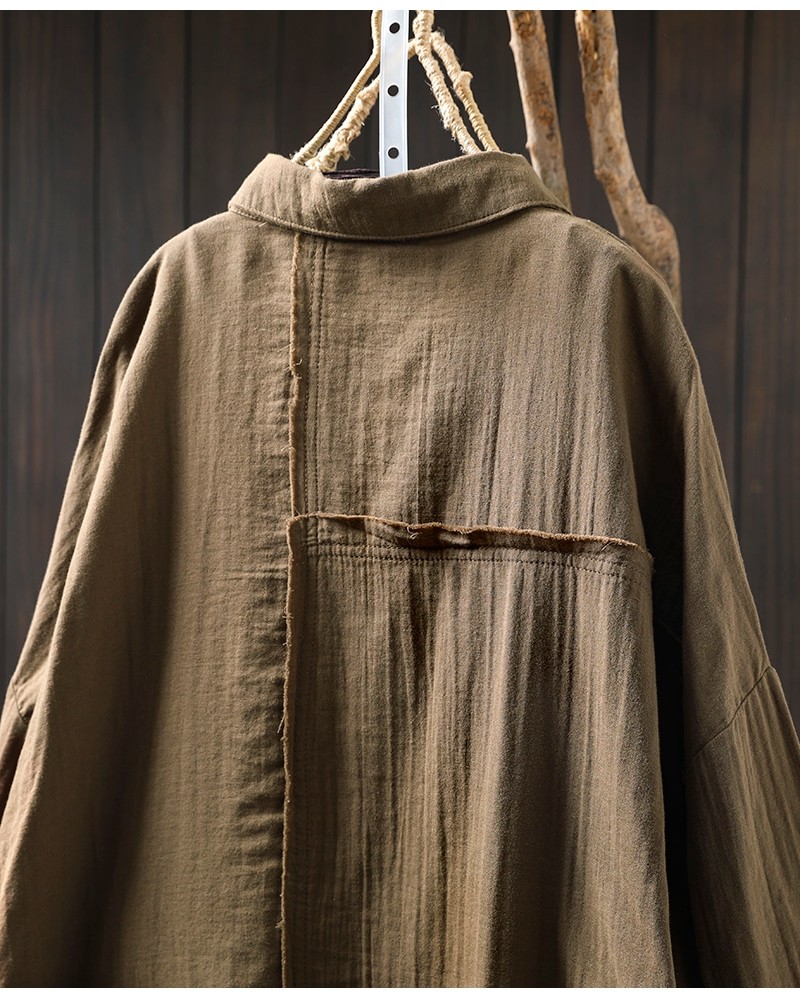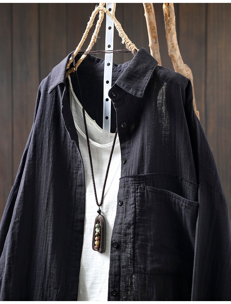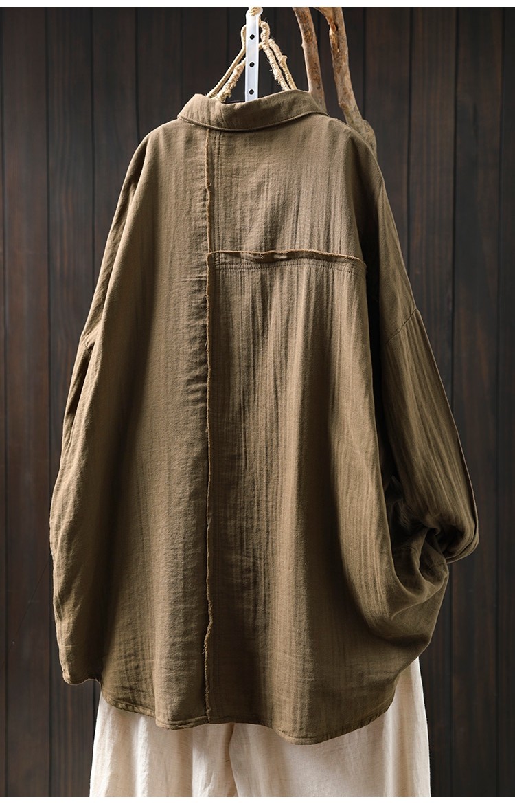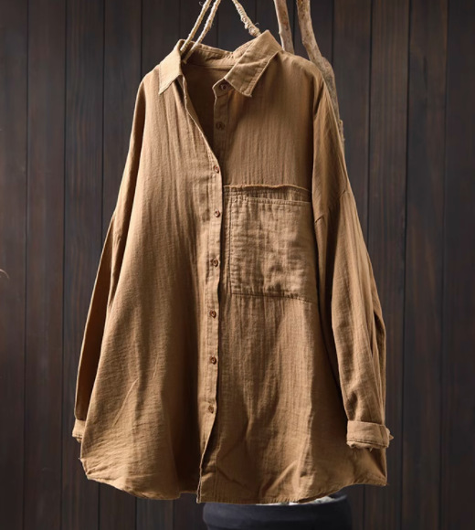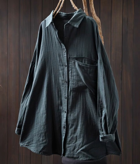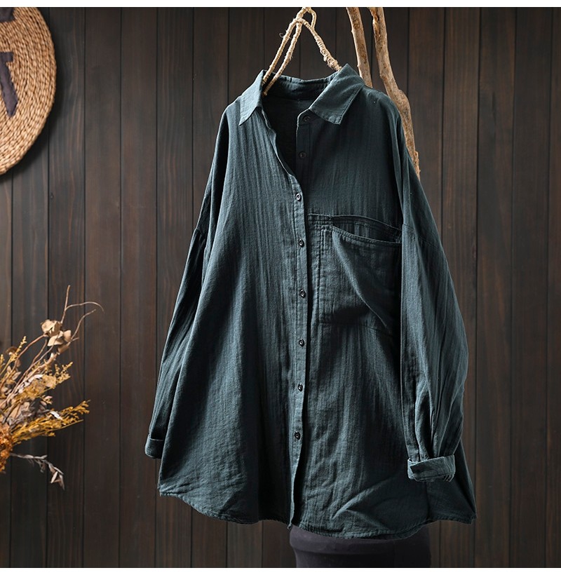 봄 새로운 면 원사 긴 소매 코트 여성용 중간 길이의 느슨한 플러스 사이즈 살 덮음 캐주얼 탑 81533스토어 가기