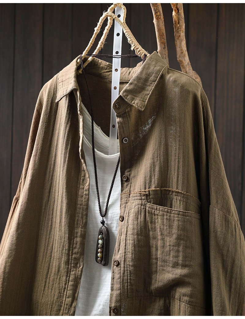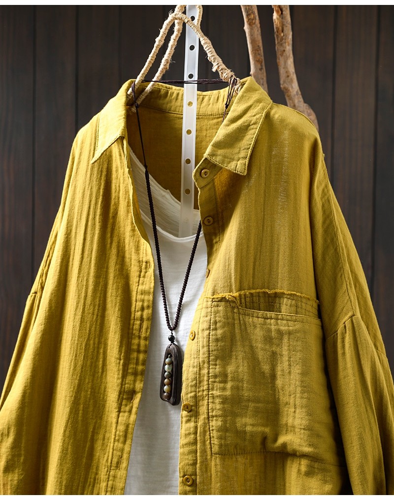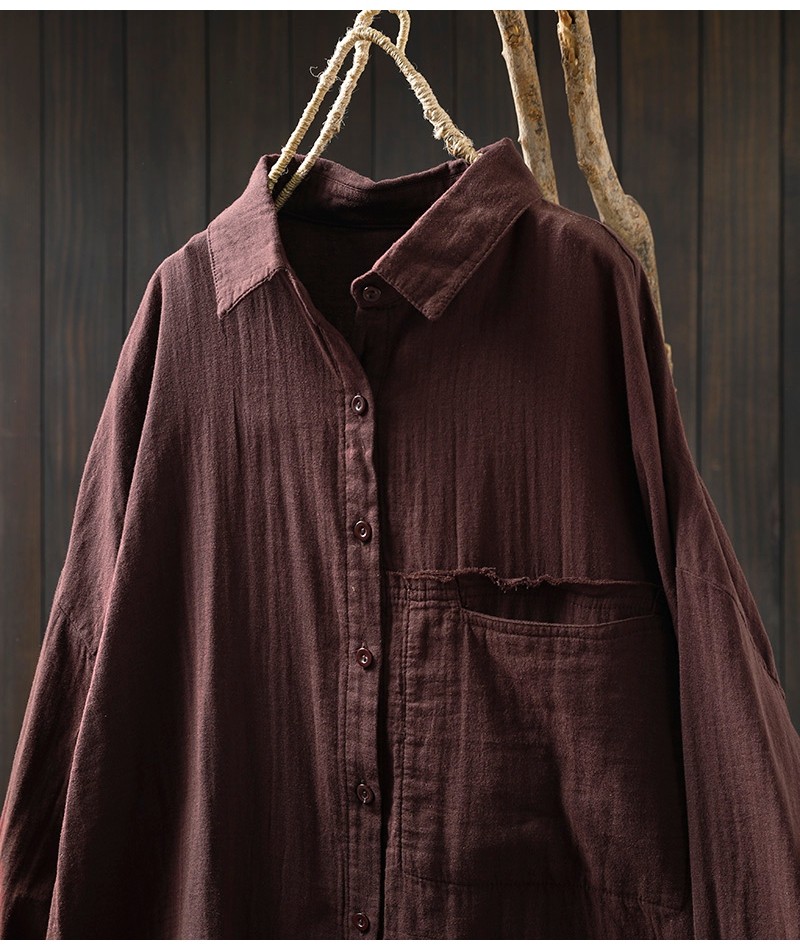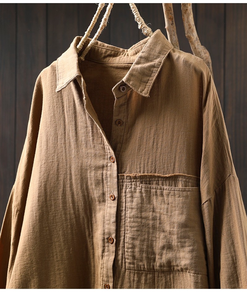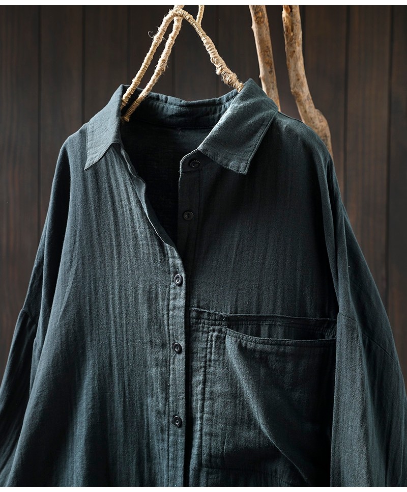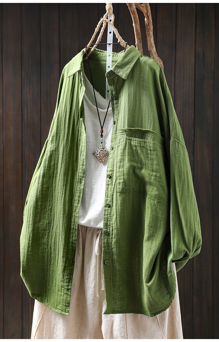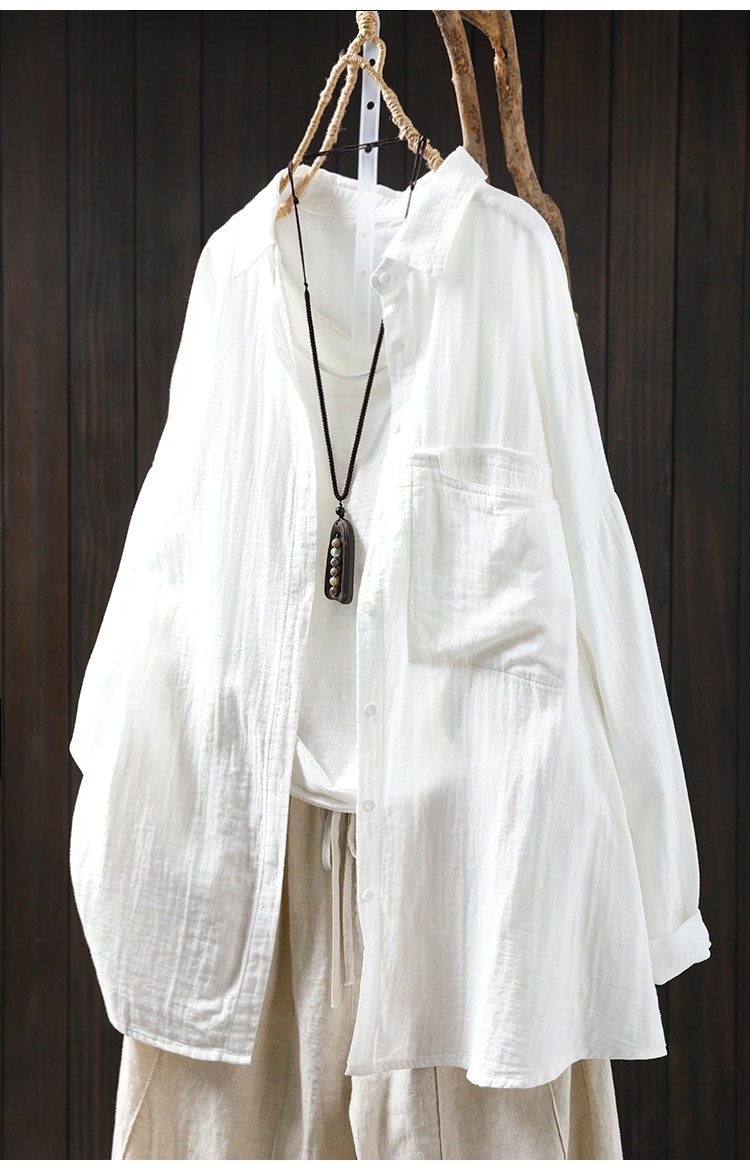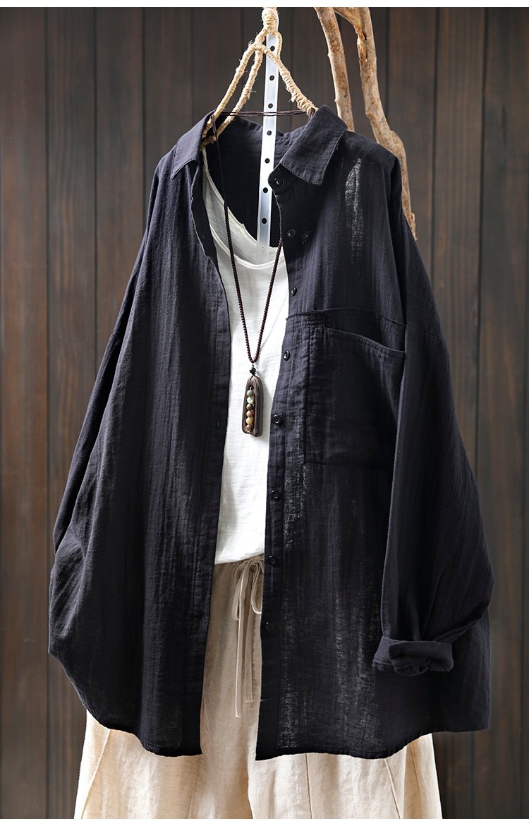 봄 새로운 면 원사 긴 소매 코트 여성용 중간 길이의 느슨한 플러스 사이즈 살 덮음 캐주얼 탑 81533스토어 가기