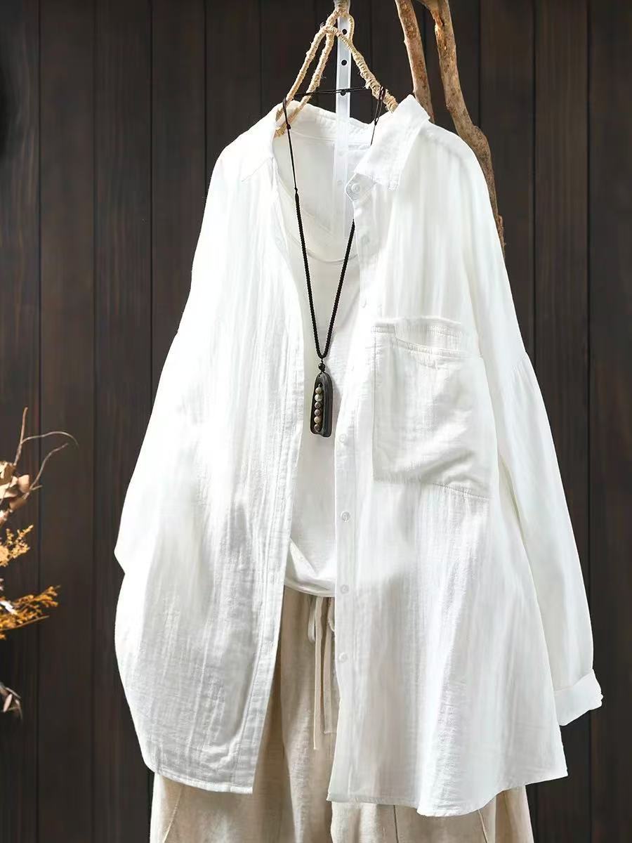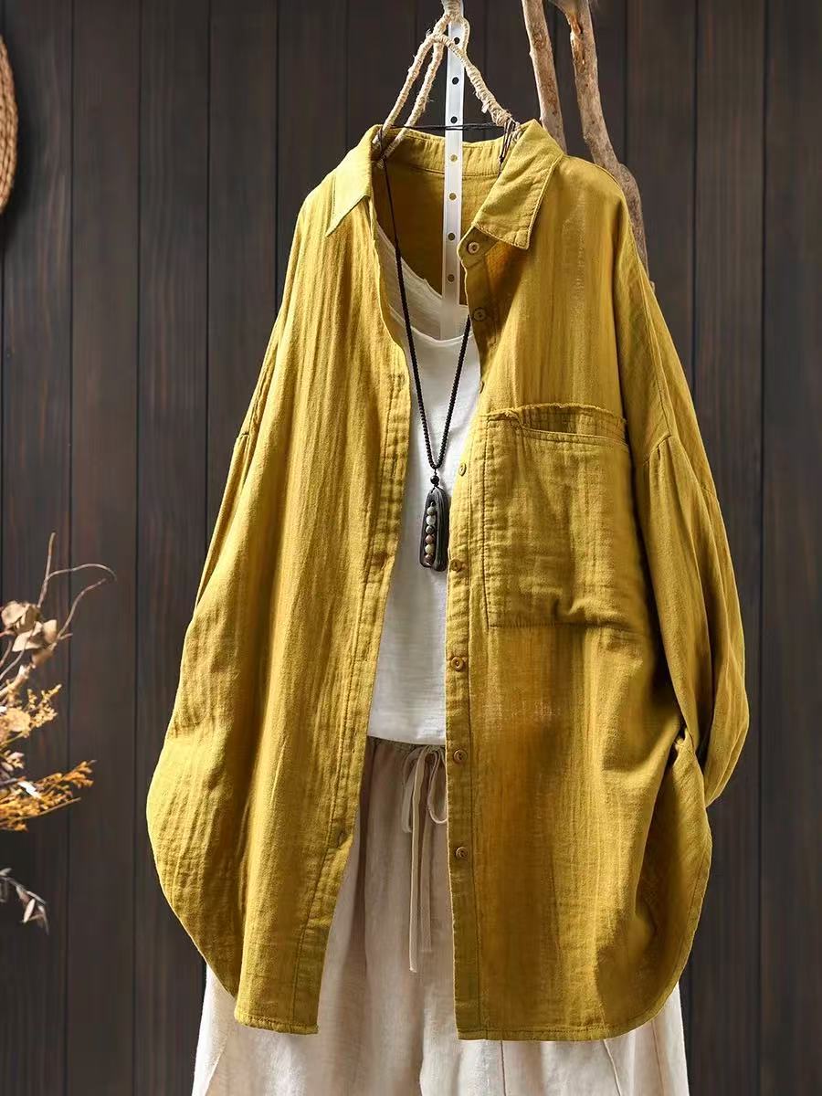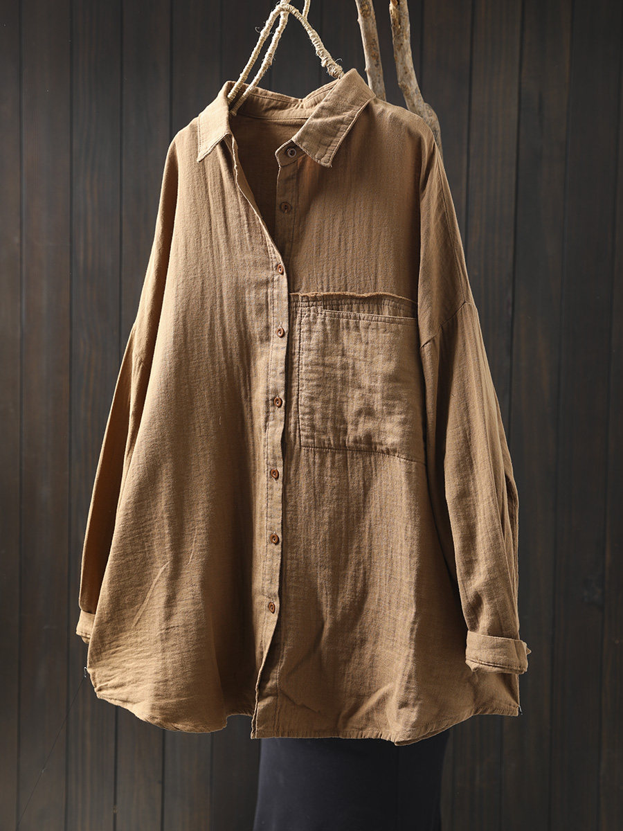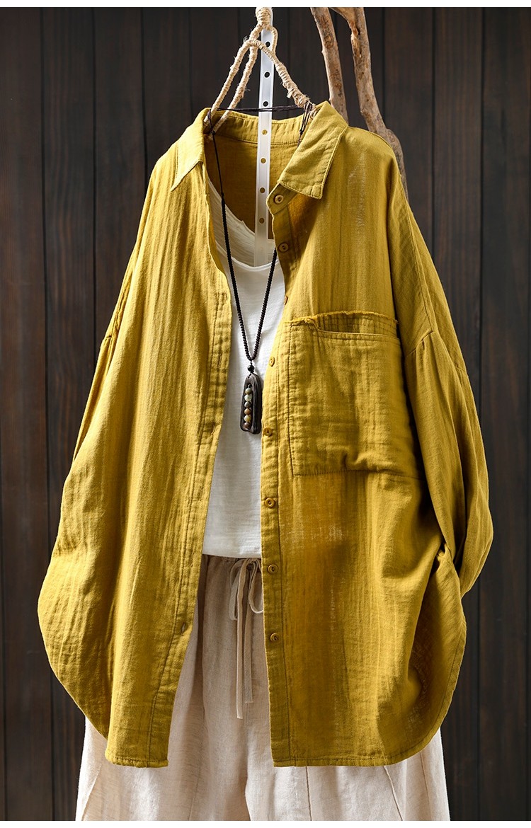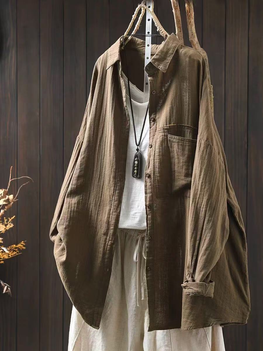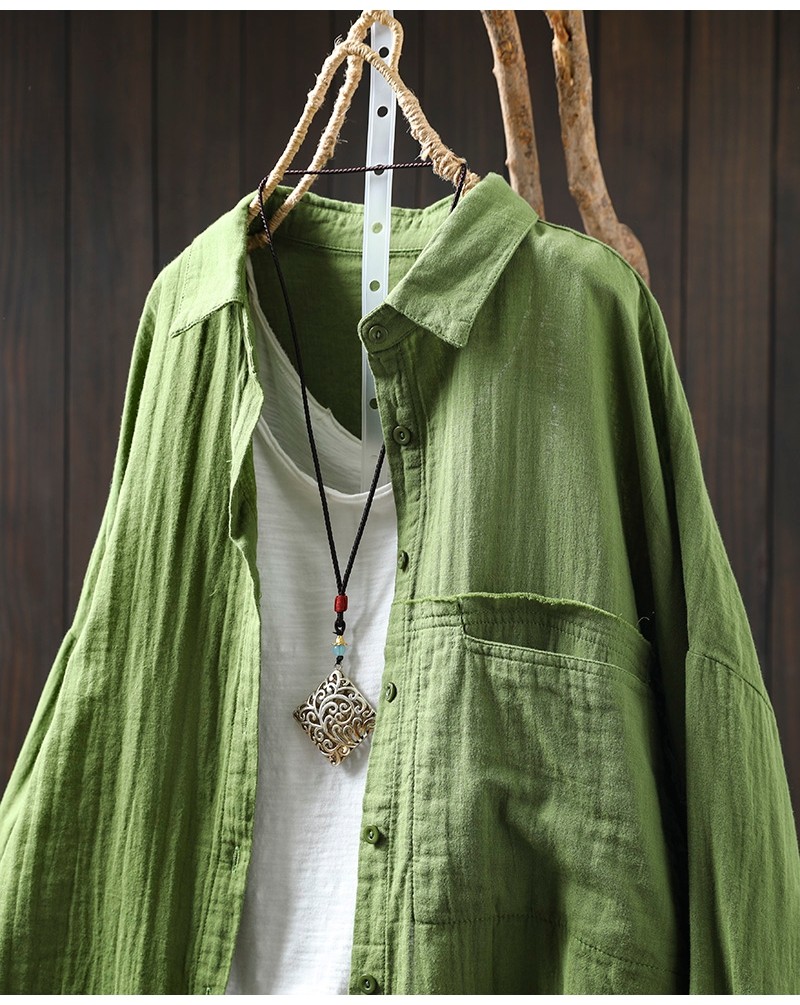 봄 새로운 면 원사 긴 소매 코트 여성용 중간 길이의 느슨한 플러스 사이즈 살 덮음 캐주얼 탑 81533스토어 가기