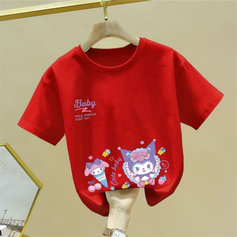 100 면화 아동복 소녀 kulomi 티셔츠 여름 만화 새로운 반소매 서양식 귀여운 반소매 tx
