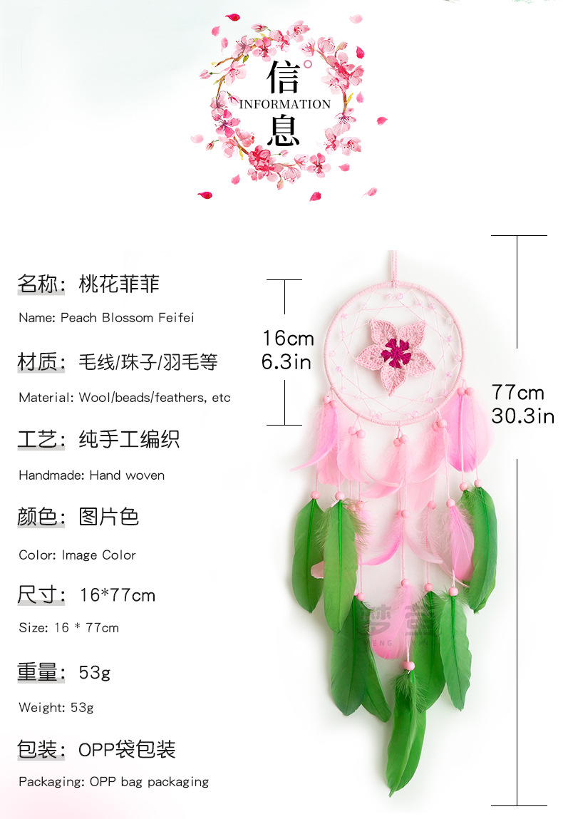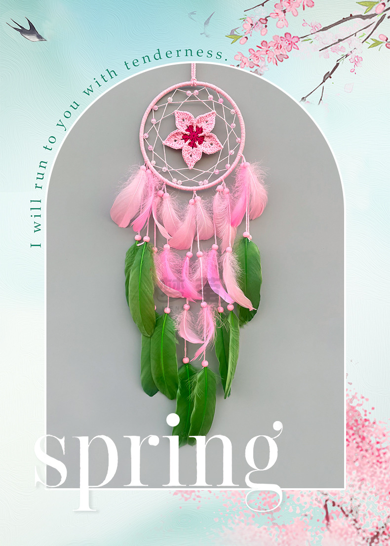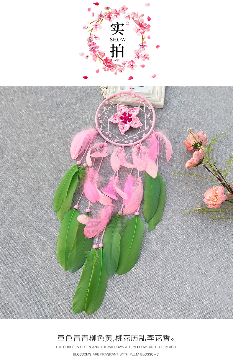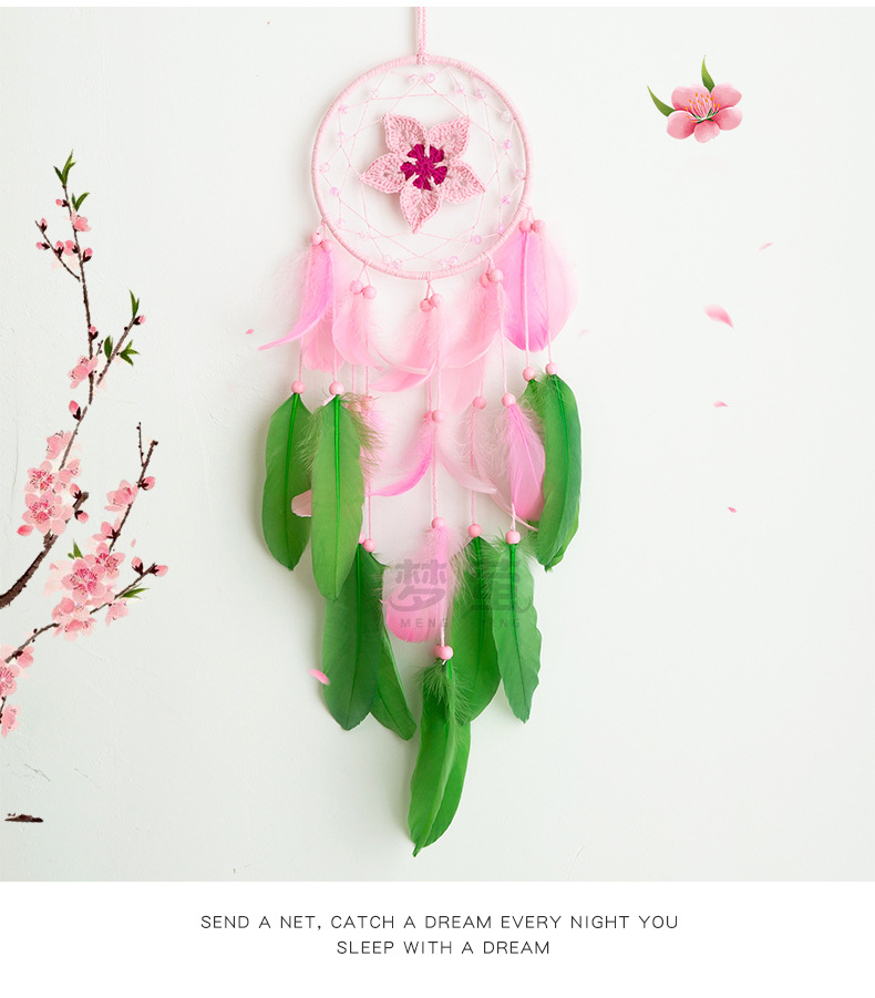 크로 셰 뜨개질 드림 캐처 고급 깃털 펜던트 핑크 소녀 심장 침실 창턱 홈 틈새 장식