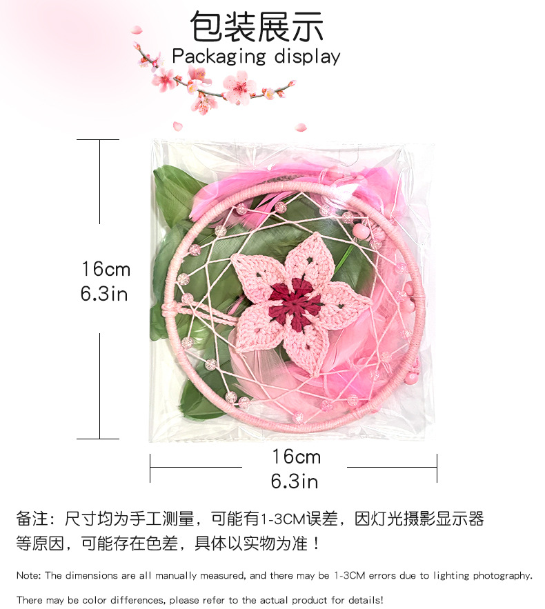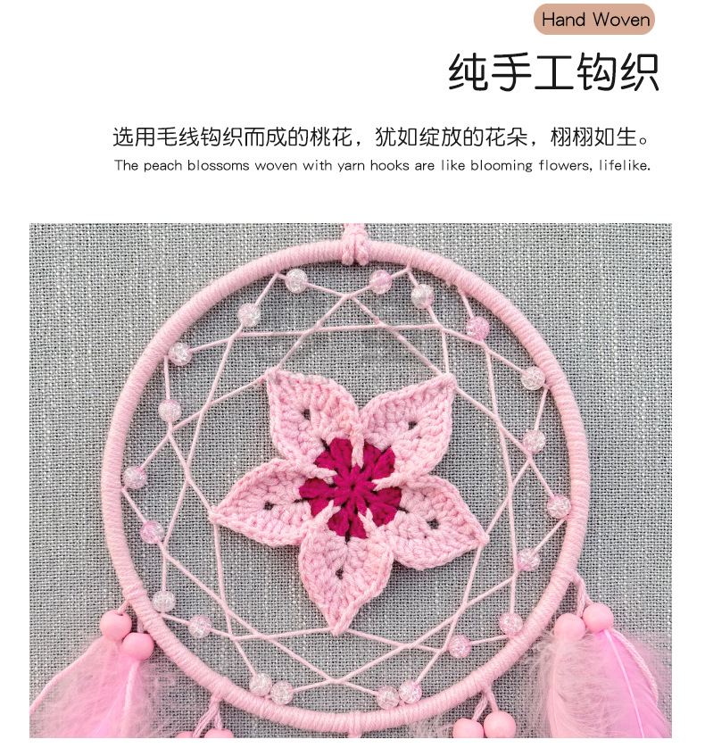 크로 셰 뜨개질 드림 캐처 고급 깃털 펜던트 핑크 소녀 심장 침실 창턱 홈 틈새 장식스토어 가기