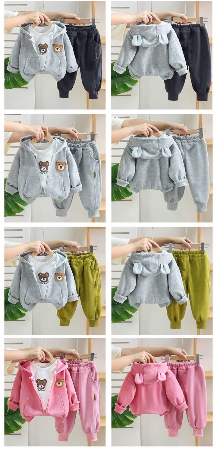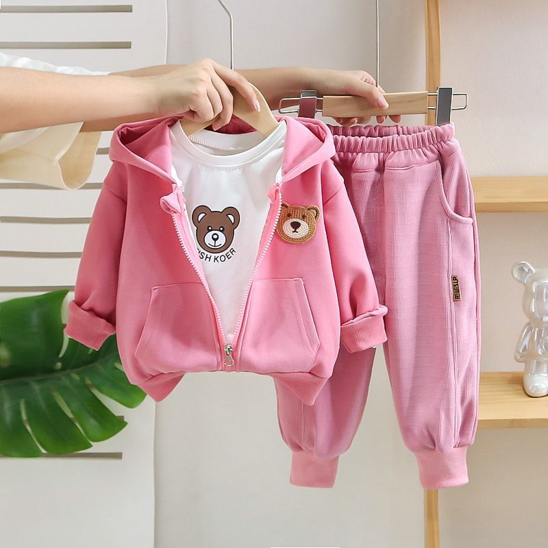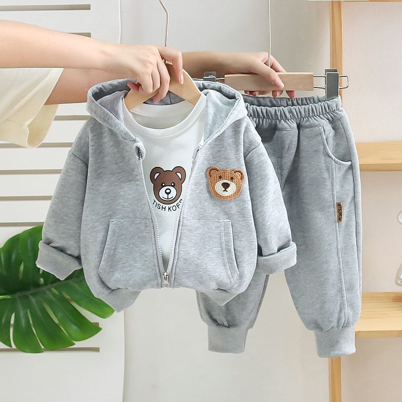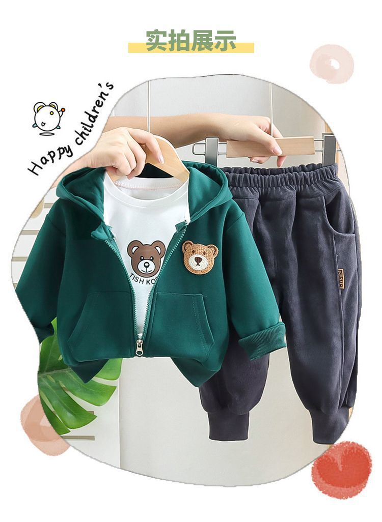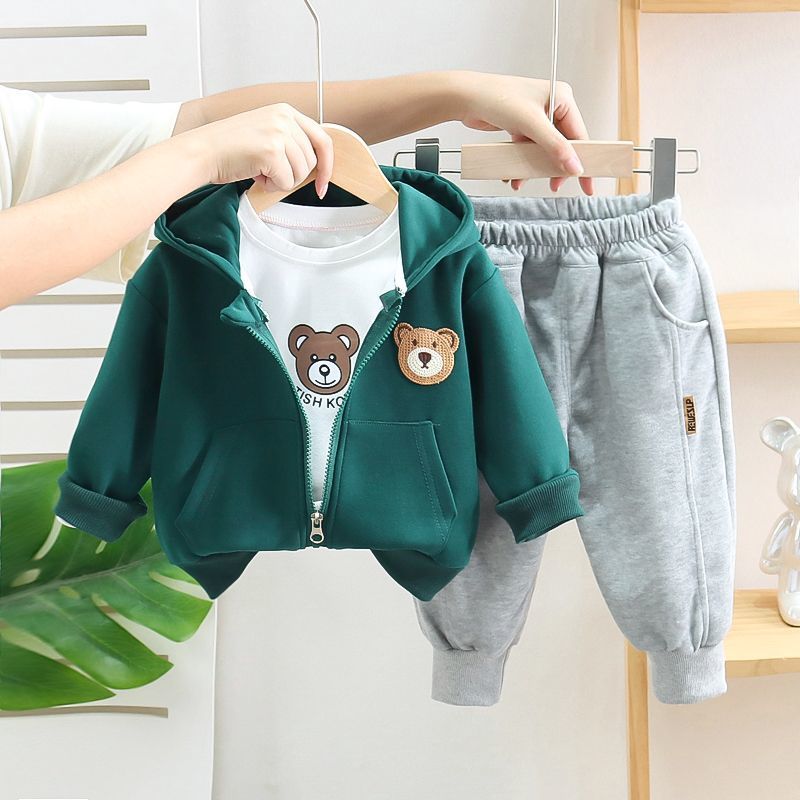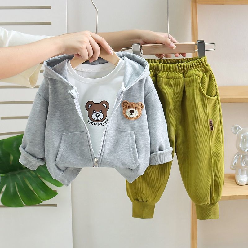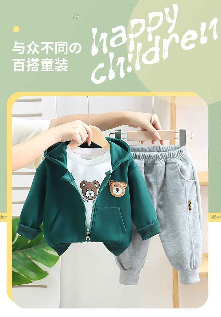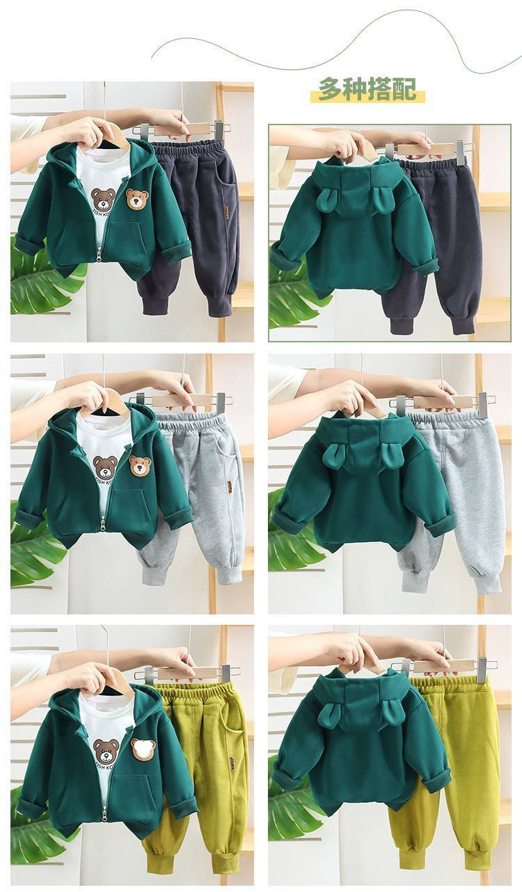 소년 봄과 가을 세트 2025 새로운 아기 어린이 후드 외국 스타일의 여성 보물 이른 가을 옷 3 피스 세트 착용