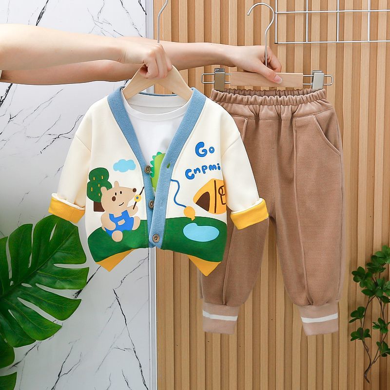소년 봄과 가을 세트 2025 새로운 아기 어린이 후드 외국 스타일의 여성 보물 이른 가을 옷 3 피스 세트 착용스토어 가기