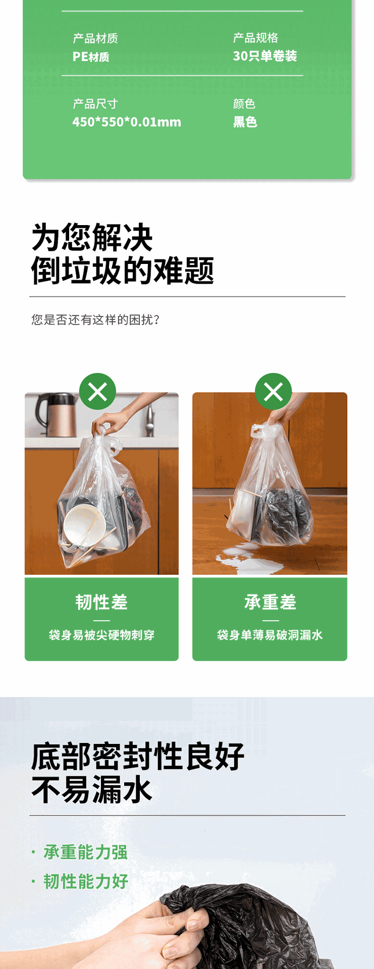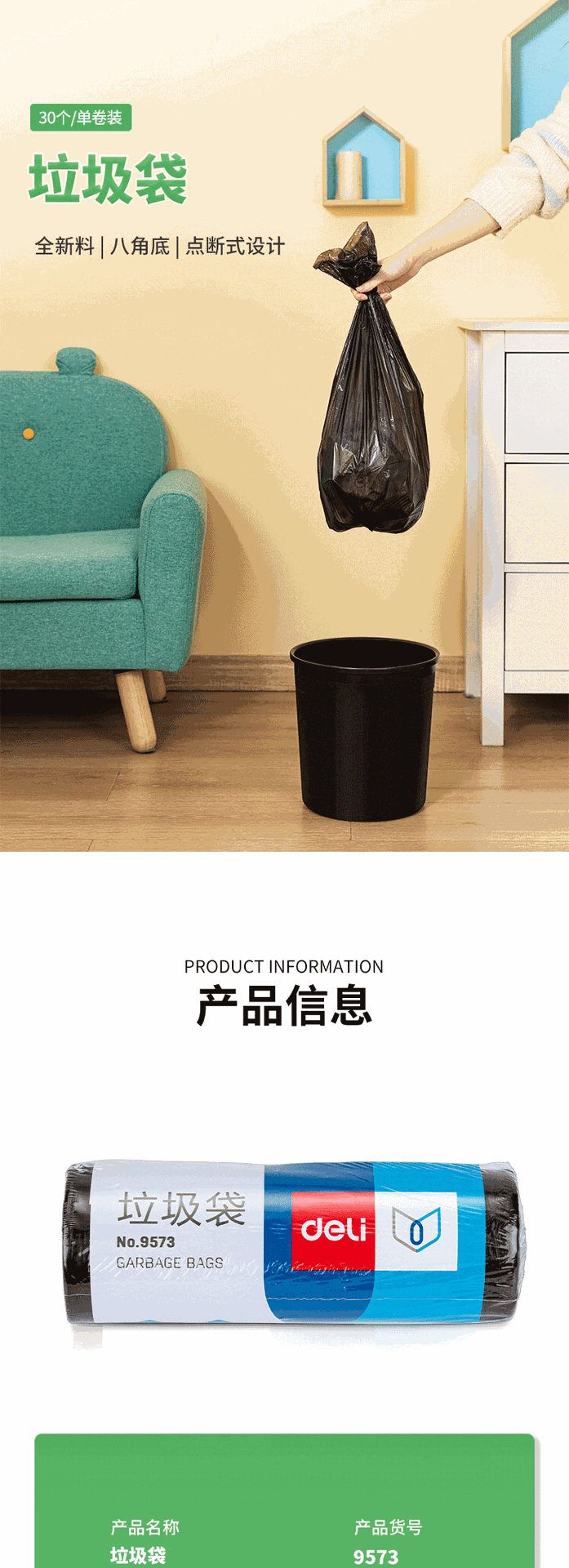 델리 9573 쓰레기 봉투 홈 오피스 두꺼운 쓰레기 봉투가 대용량 도매 일회용 주방스토어 가기