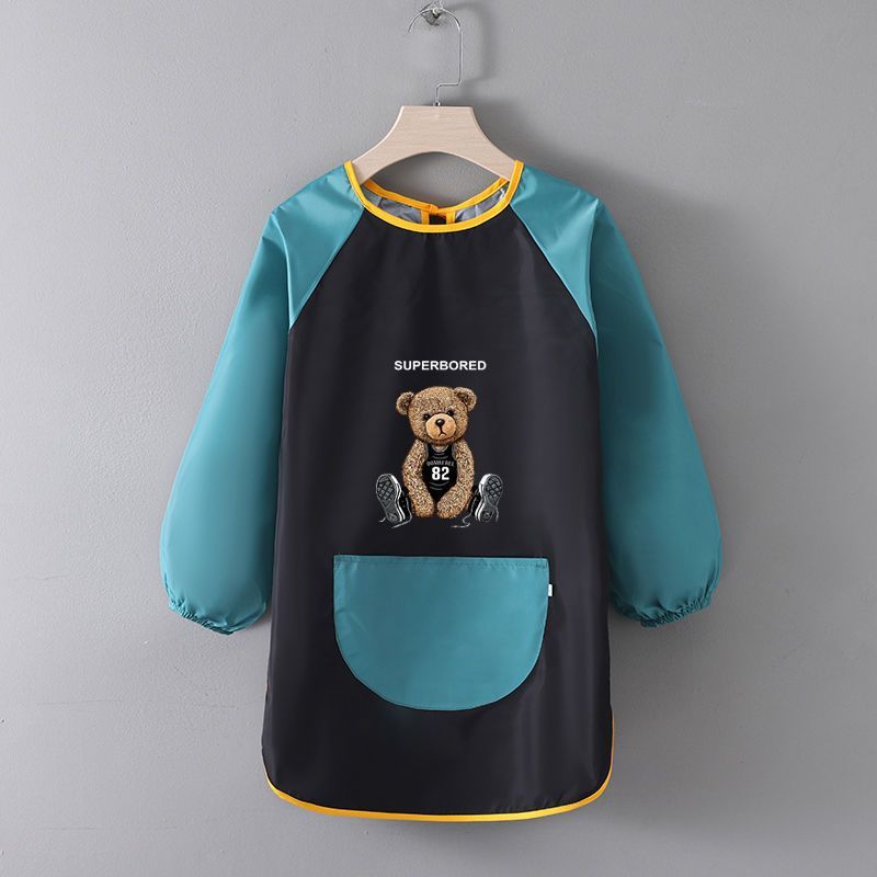 어린이 방수 앞치마 스튜디오 회화 마스크 그림을 먹는 남자와 여자 안티 드레싱 유치원 로고 인쇄 반전