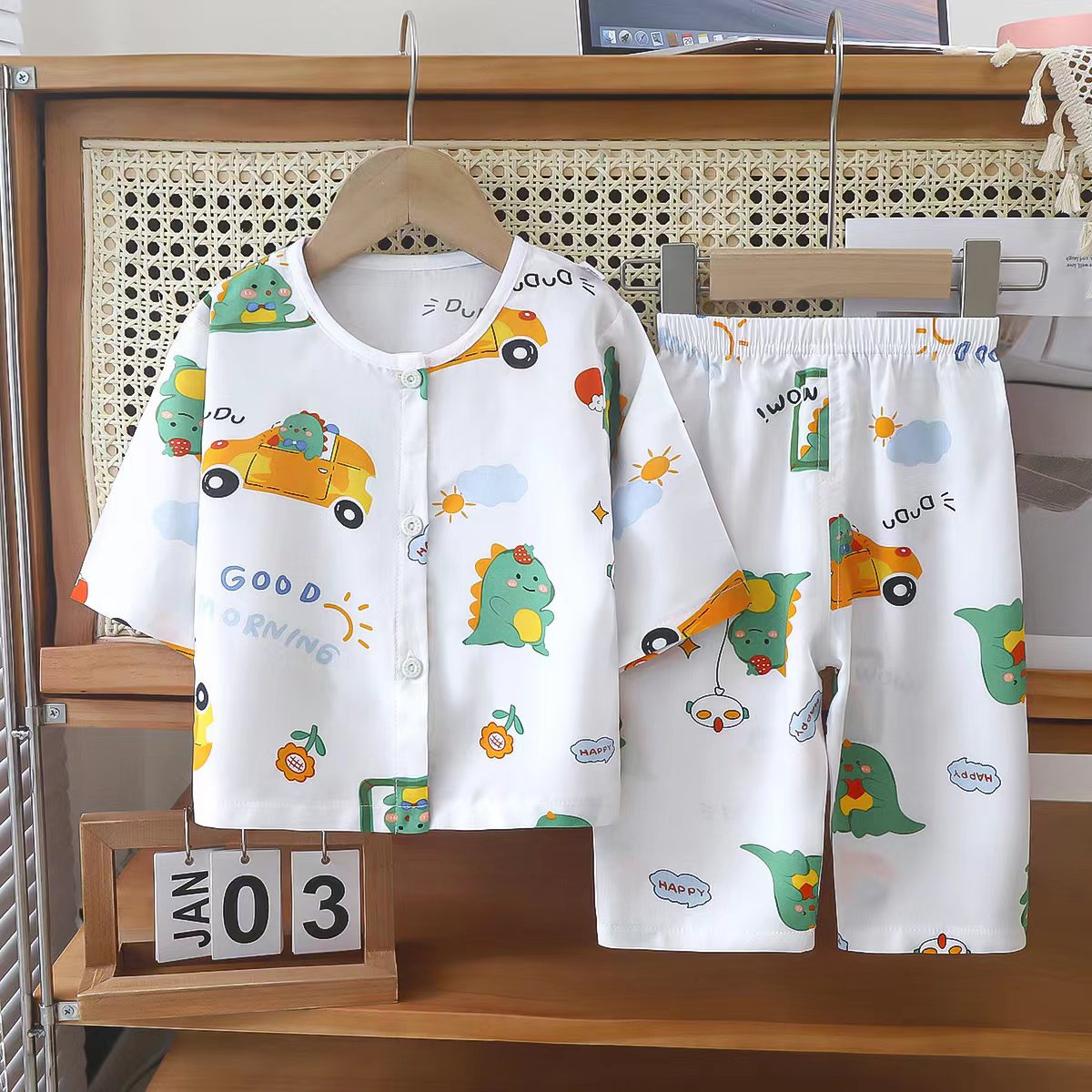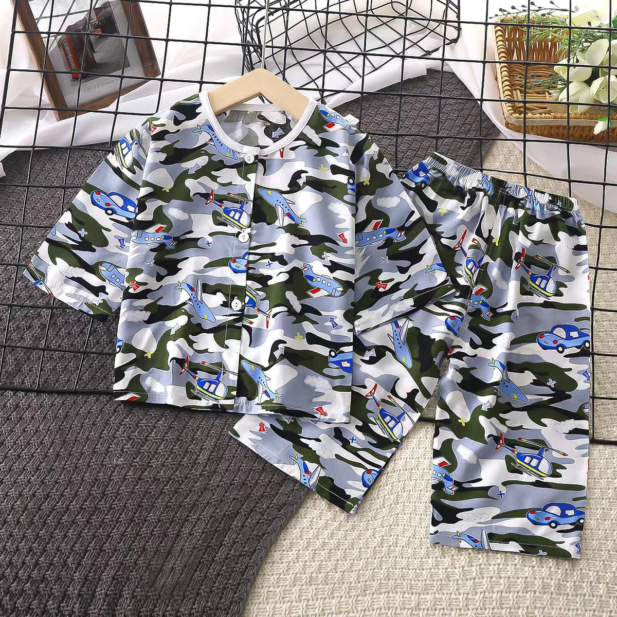 어린이 면 실크 잠옷 세트 여름용 아기 얇은 가디건 홈웨어 면 실크 에어컨 옷 도매스토어 가기