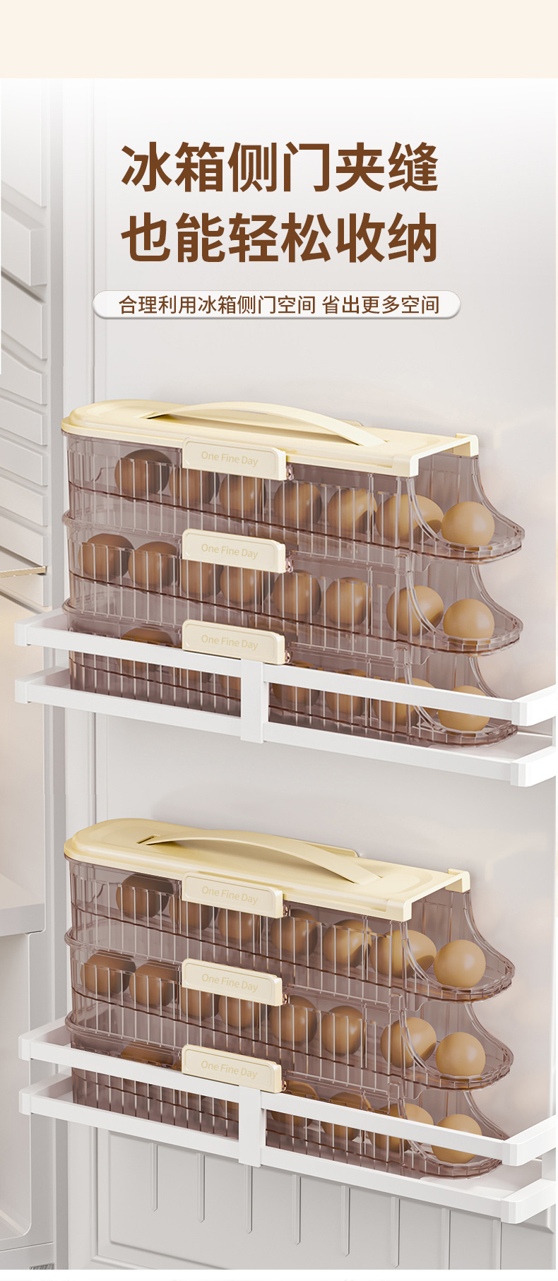 냉장고 문 롤링 계란 랙 휴대용 계란 상자 주방 계란 상자 계란 저장 상자 냉장고 쌓을 수스토어 가기