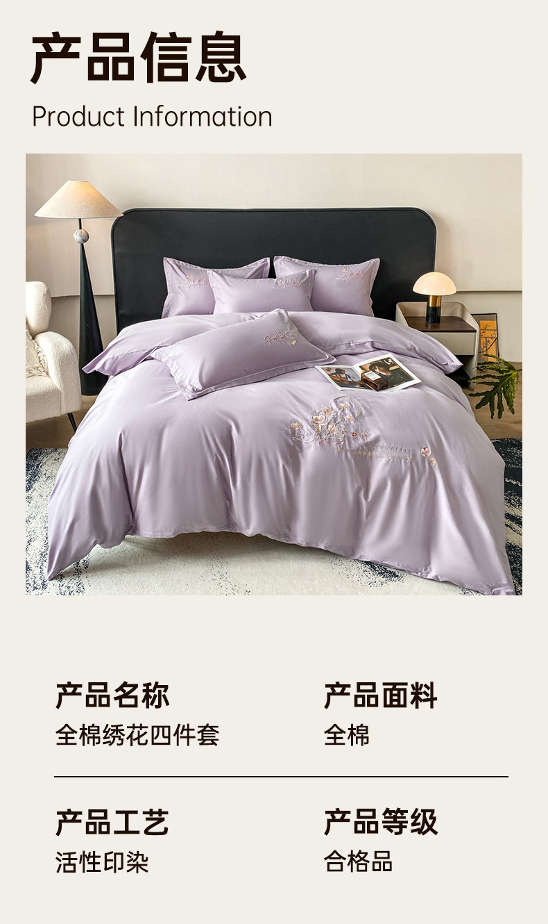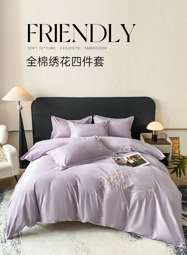 2025 신형 코튼 롱 스테이플 자수 자수 4 피스 세트